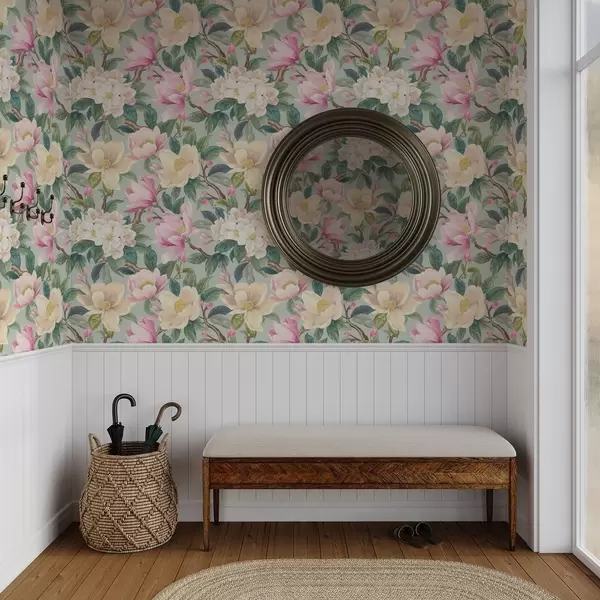 Papel de parede Magnólias e flores brancas sobre um fundo cinza-menta Nr. a00644