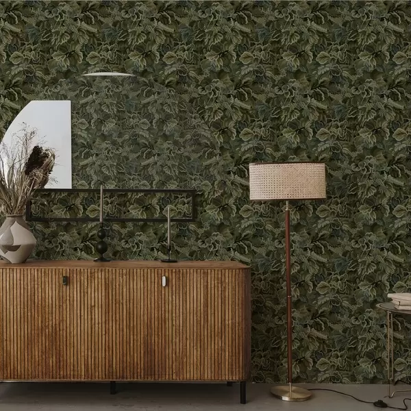 Papel de parede Folhas densas de videira numa paleta de verde intenso Nr. a00647