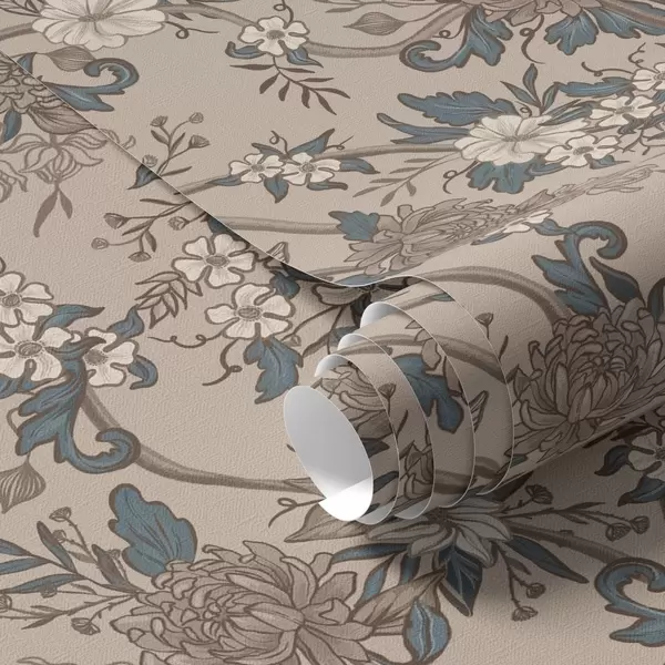 Papel de parede Flores grandes com folhas estampadas sobre um fundo bege quente Nr. a00649