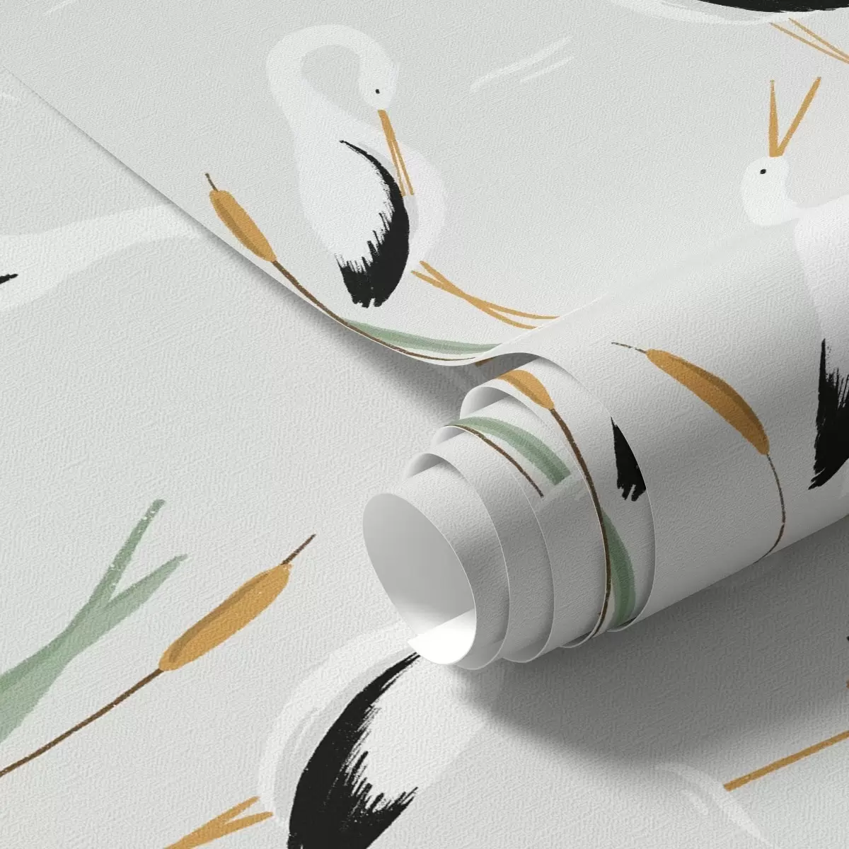 Papel de parede Garças entre juncos num fundo claro Nr. a00650v2