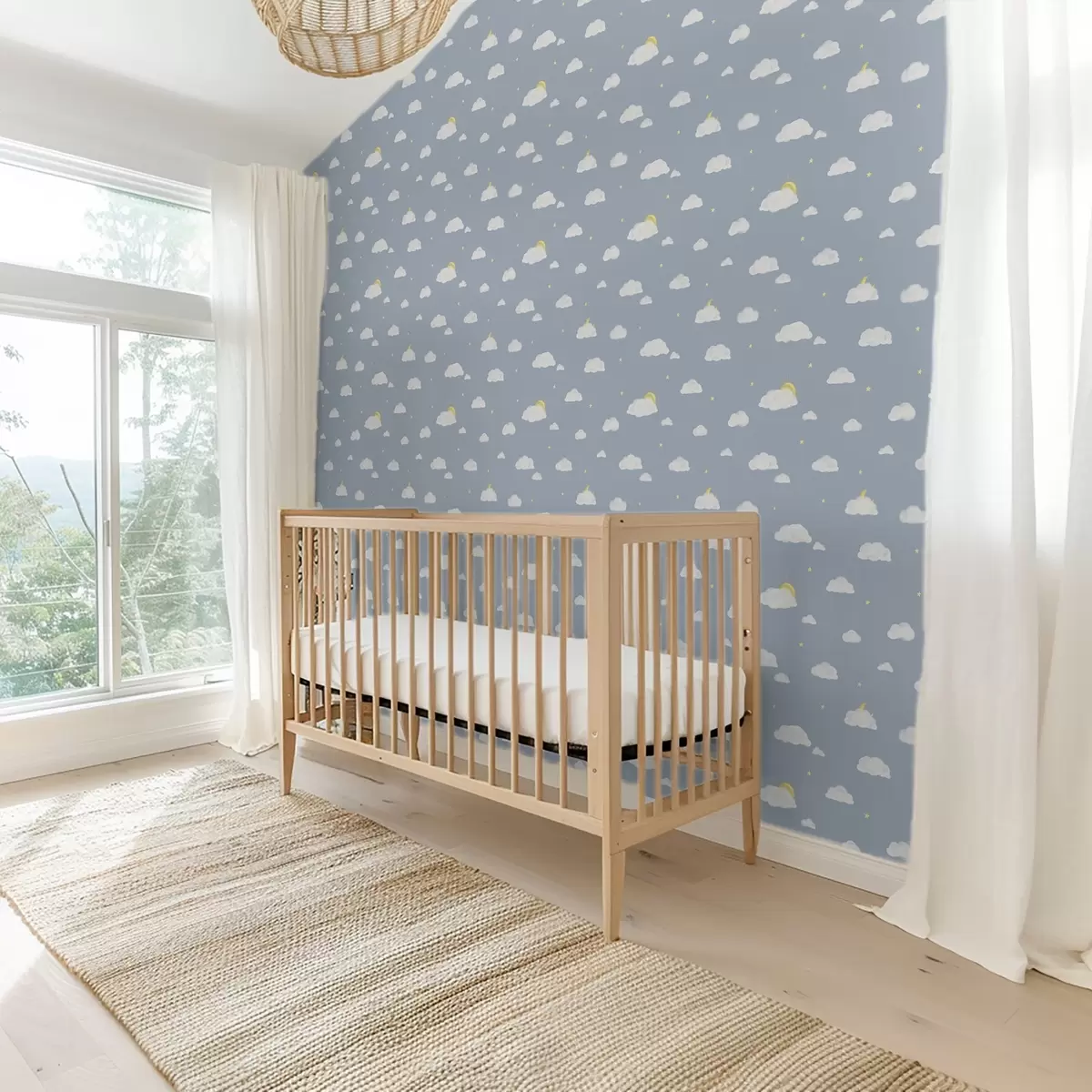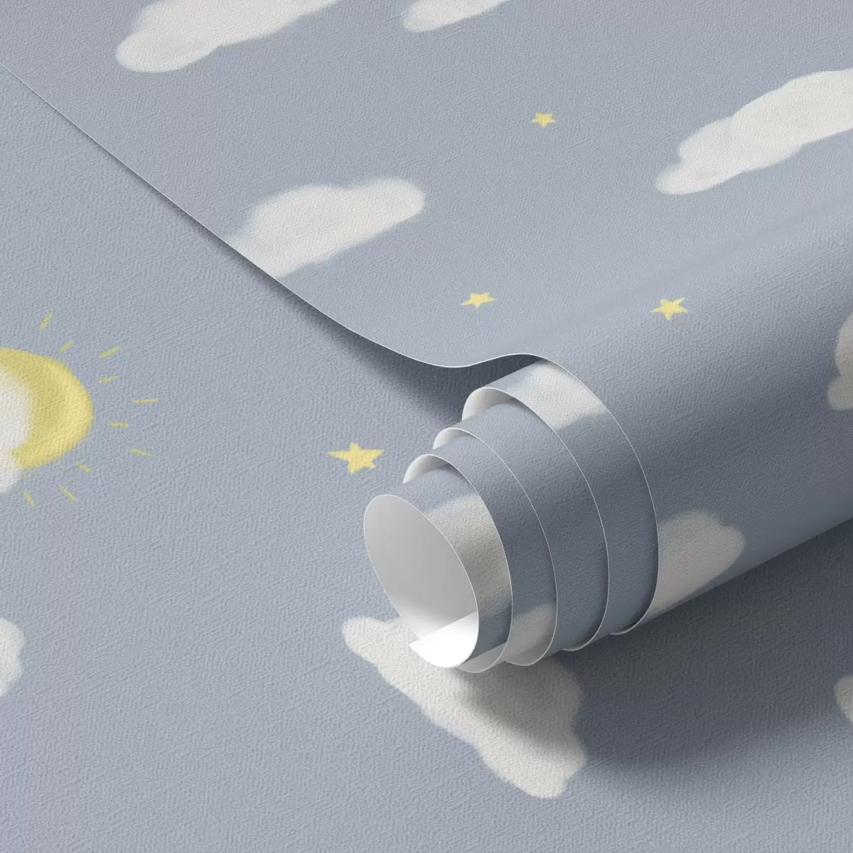 Papel de parede Nuvens suaves, estrelas e sol num fundo azul Nr. a00652