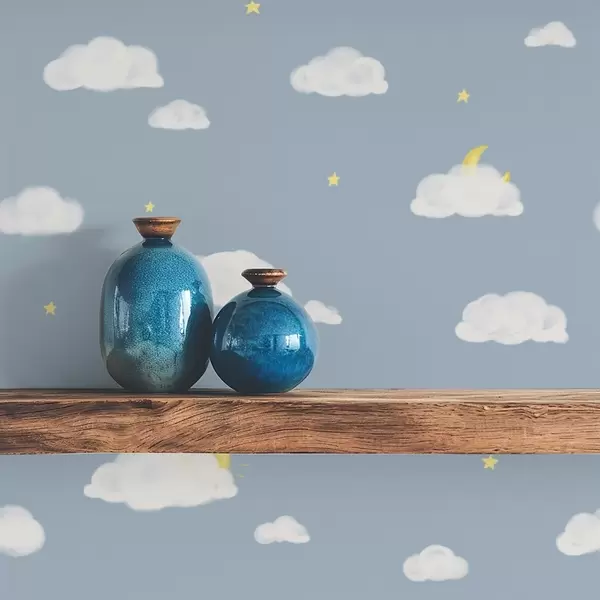 Papel de parede Nuvens suaves, estrelas e sol num fundo azul Nr. a00652