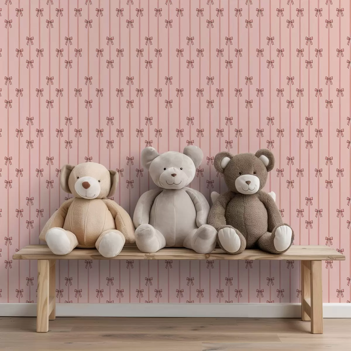 Papel de parede Fitas verticais com laços, fundo rosa coral Nr. a00653v3