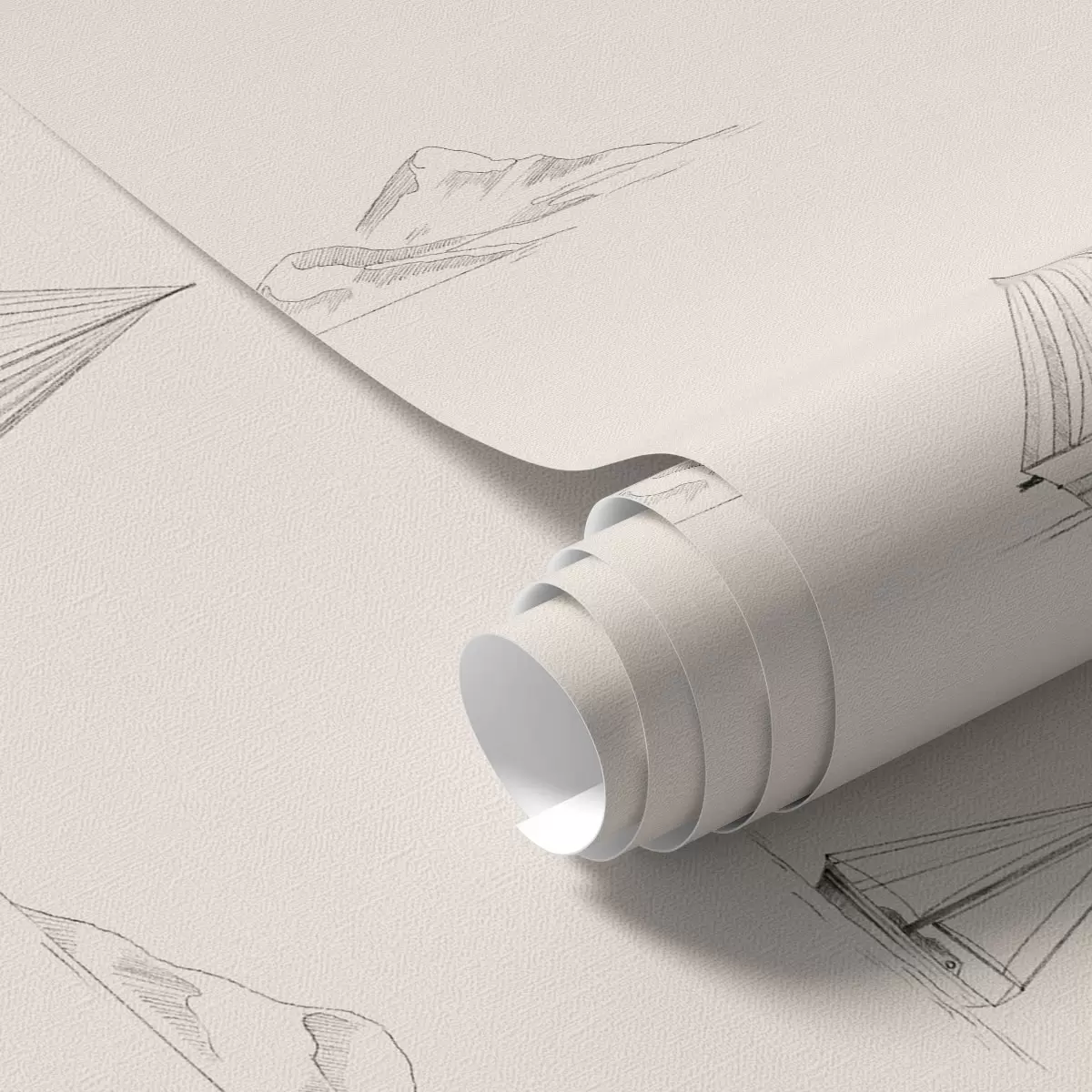 Papel de parede Esboce iates e ilhas, fundo creme quente Nr. a00654v1