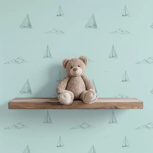 Papel de parede Esboce iates e ilhas, fundo verde menta Nr. a00654v4