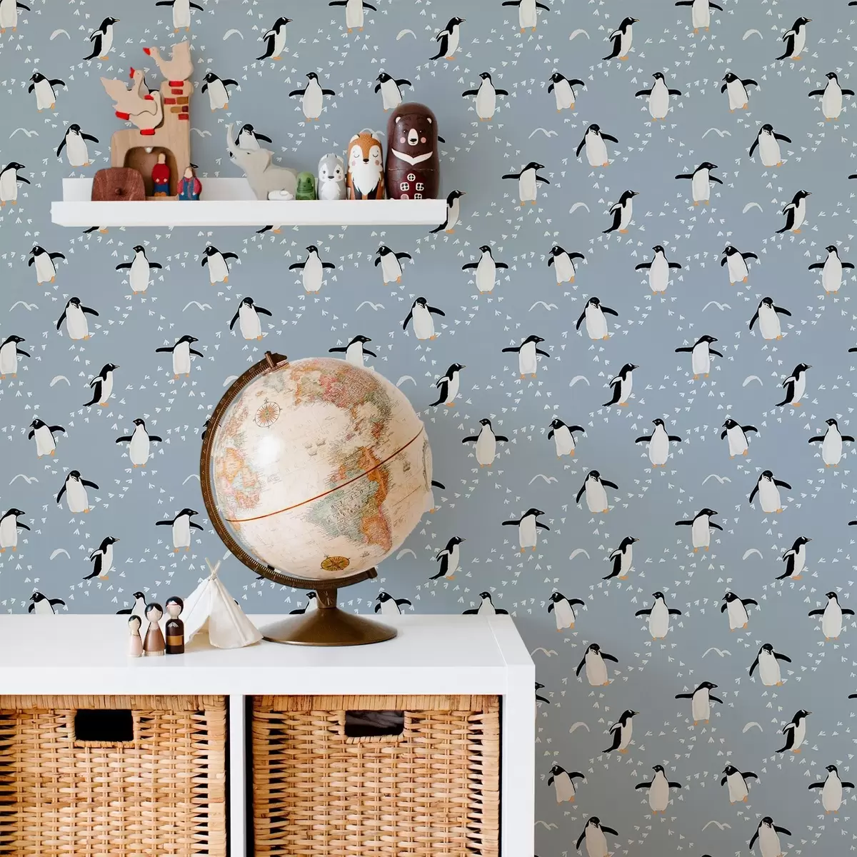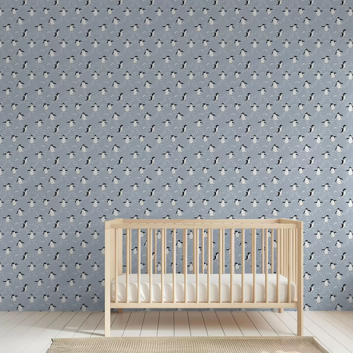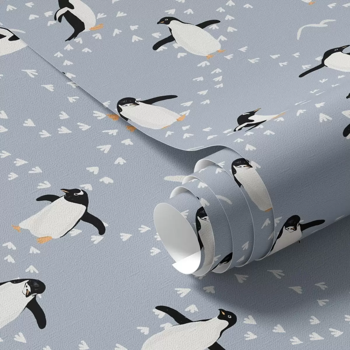 Papel de parede Pinguins em azul-acinzentado com pegadas Nr. a00655