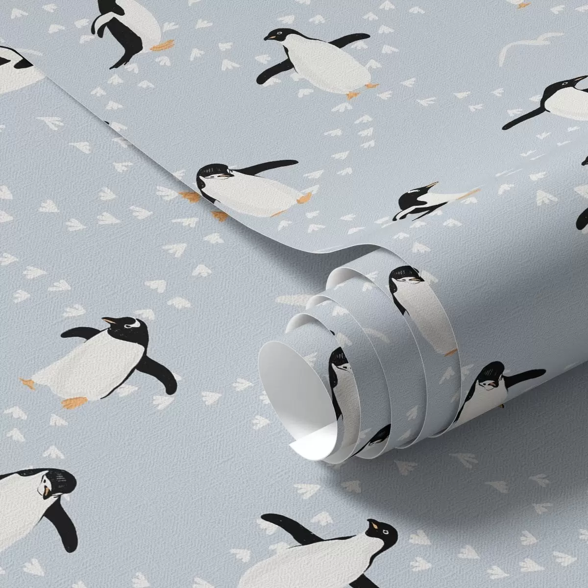 Papel de parede Pinguins em azul claro, ritmo de pegadas Nr. a00655v2