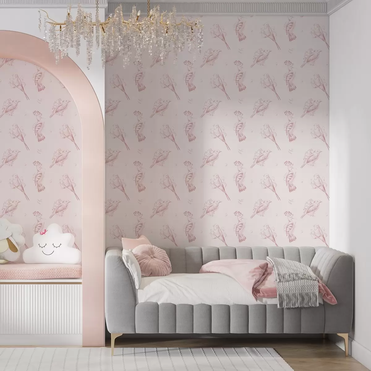 Papel de parede Toile com pássaros: esboço de pássaros, fundo rosa suave Nr. a00656