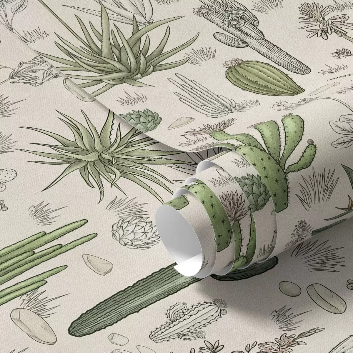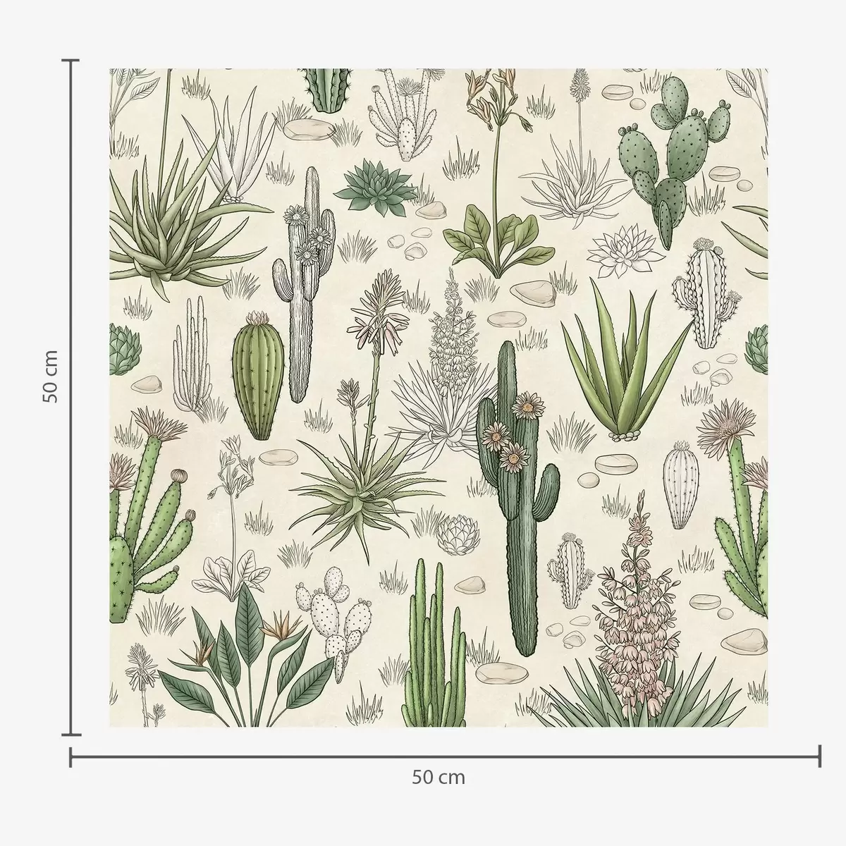 Papel de parede Cactos e suculentas num fundo quente, impressão detalhada Nr. a00666
