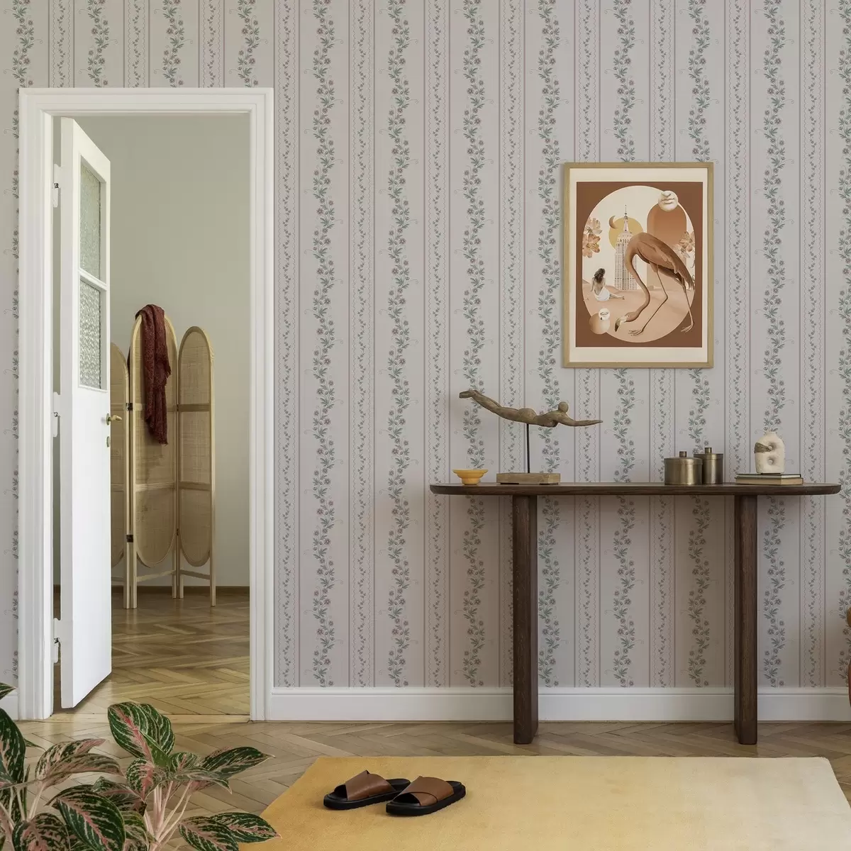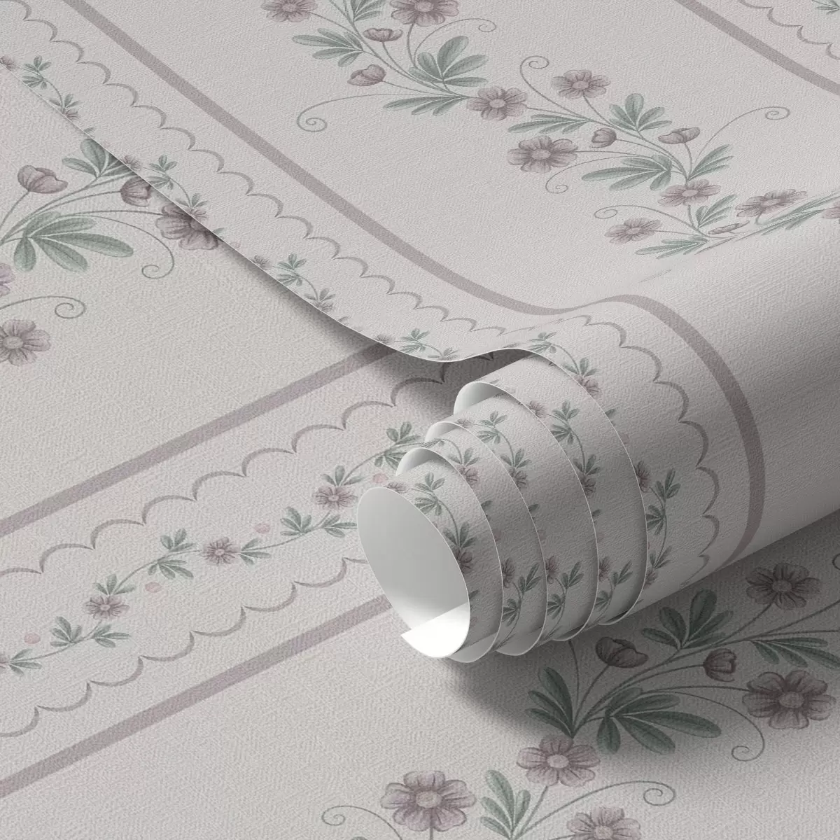 Papel de parede Listras delicadas com flores de lavanda, vintage Nr. a00671