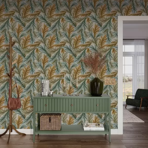 Papel de parede Folhagem decorativa numa paleta de tons quentes de ocre e verde Nr. a00673