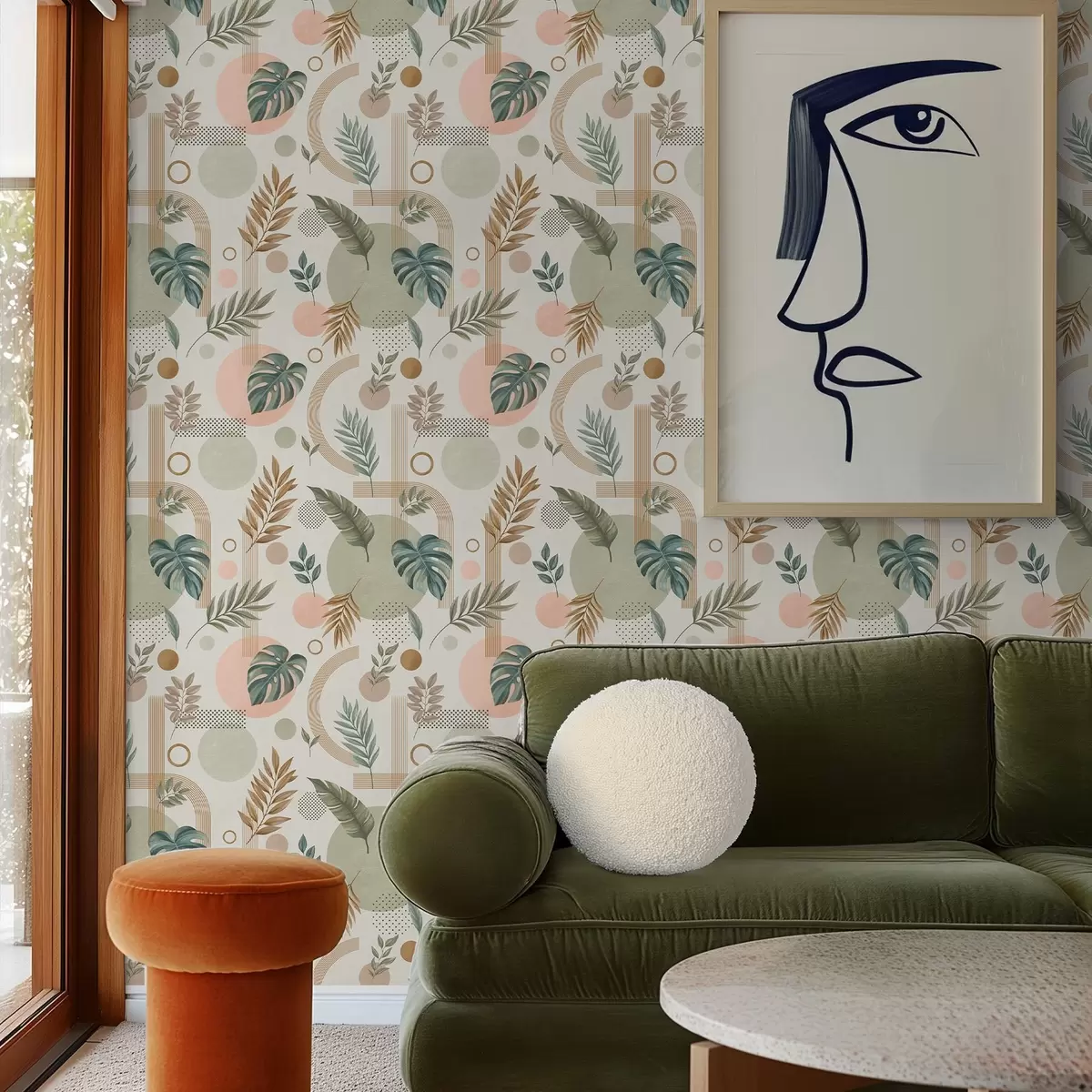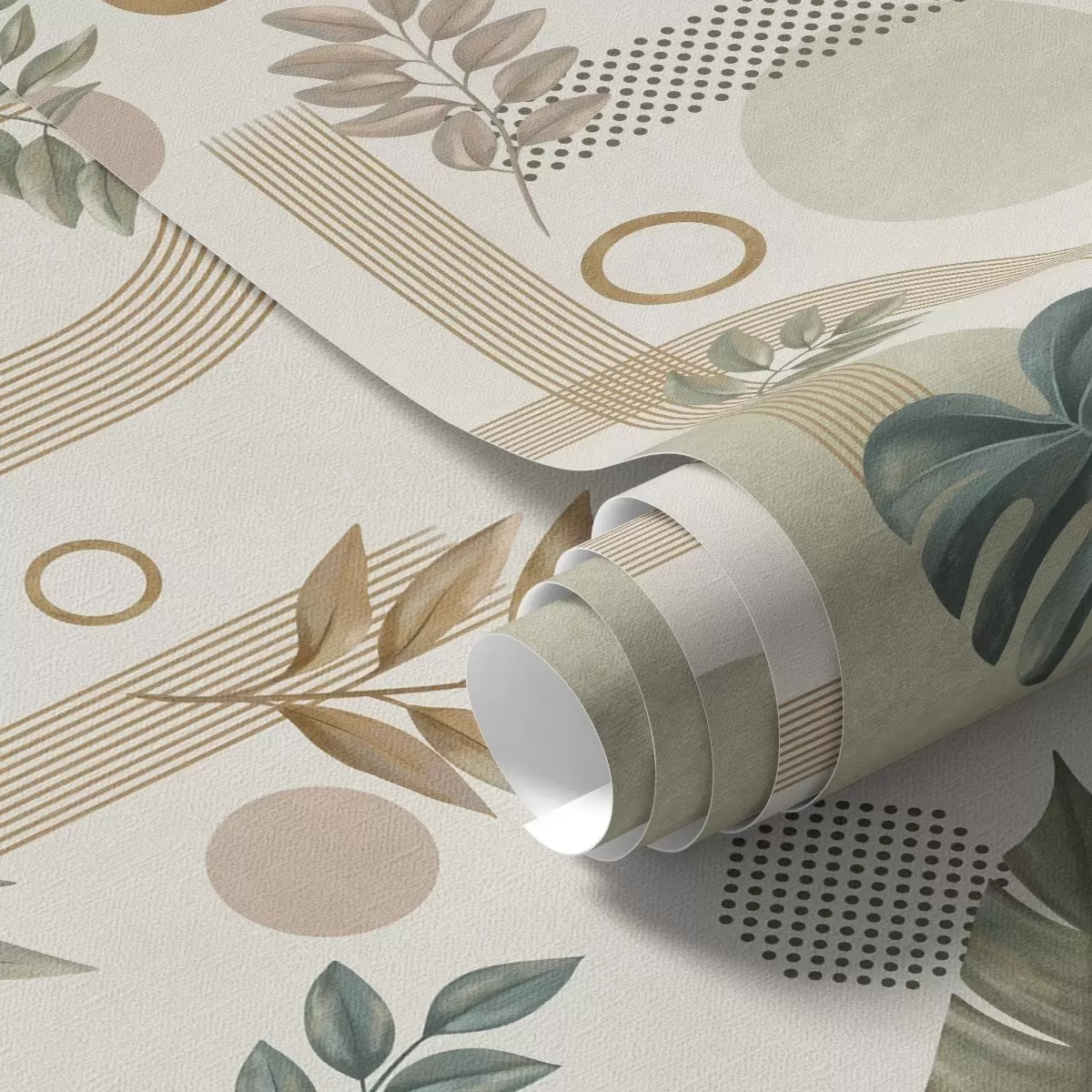 Papel de parede Folhas e formas geométricas em tons suaves e quentes Nr. a00677
