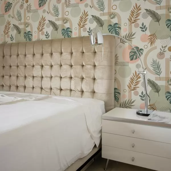 Papel de parede Folhas e formas geométricas em tons suaves e quentes Nr. a00677