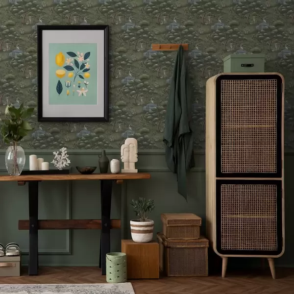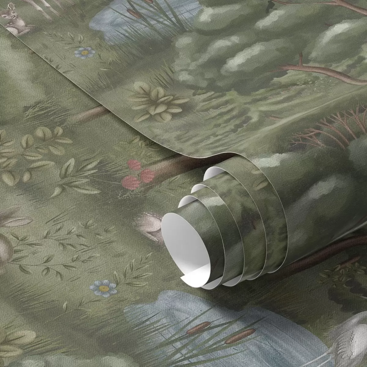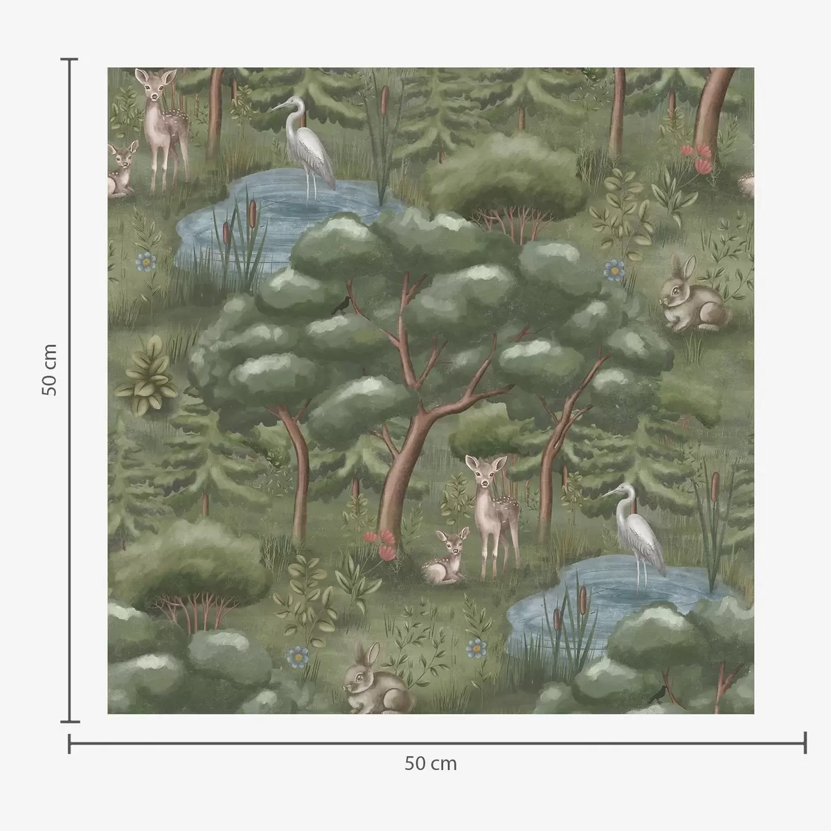 Papel de parede Clareira na floresta com veados, coelhos e garças Nr. a00680