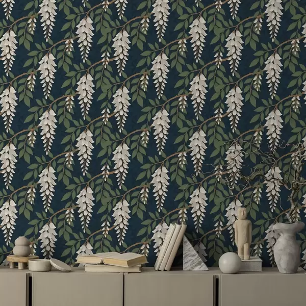 Papel de parede Glicínia marfim sobre fundo azul-petróleo escuro Nr. a00694v1