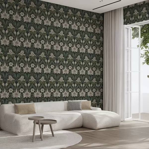 Papel de parede Composição Art Nouveau com lírios sobre fundo escuro Nr. a00696