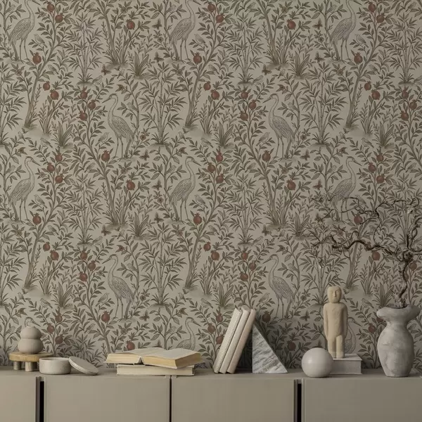 Papel de parede Pássaros entre romãzeiras num ambiente natural Nr. a00699