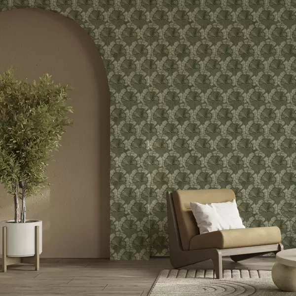 Papel de parede Padrão gráfico com ginkgo numa paleta de verdes frescos Nr. a00709