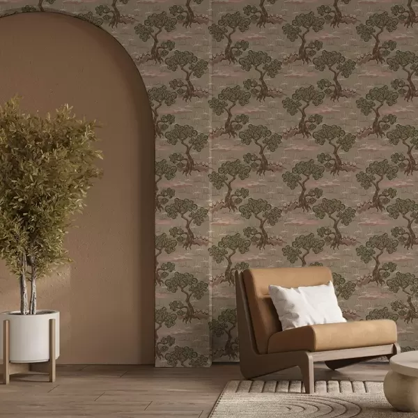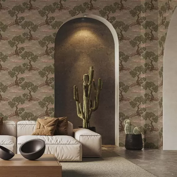 Papel de parede Paisagem oriental com árvores caprichosas sobre um fundo arenoso Nr. a00715