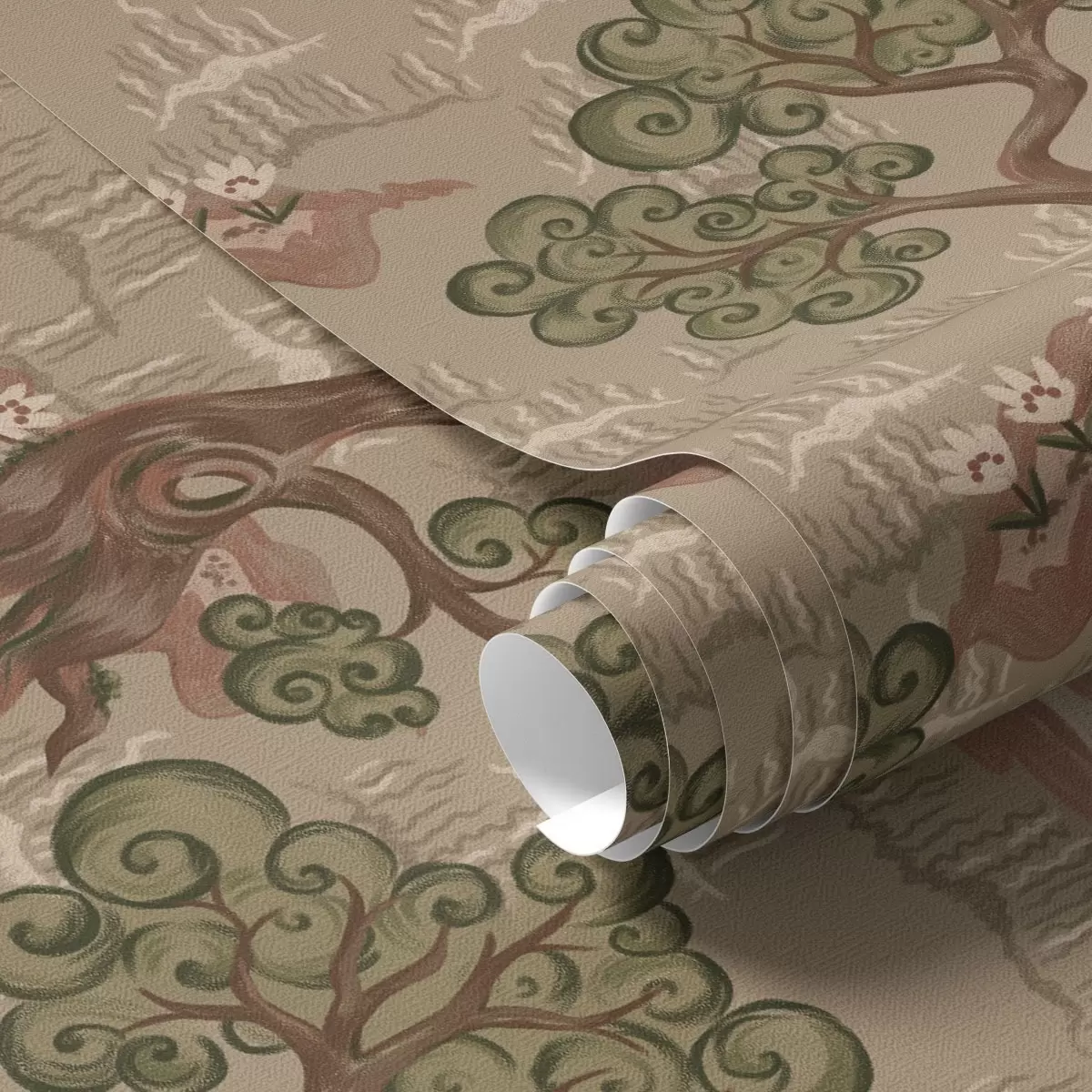 Papel de parede Paisagem oriental com árvores caprichosas sobre um fundo arenoso a00715