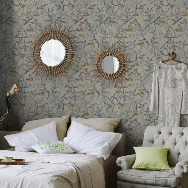 Papel de parede Flores vintage com folhagem azul sobre fundo creme Nr. a00717