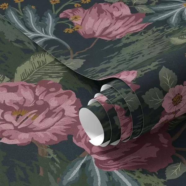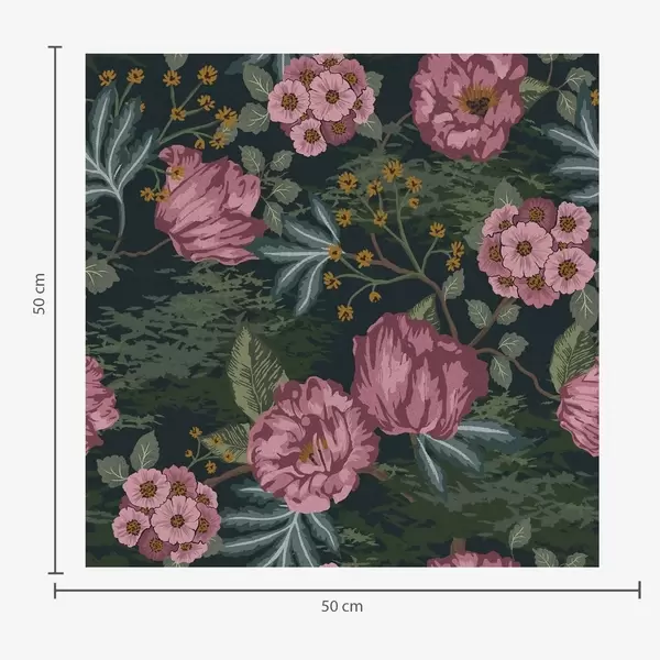 Papel de parede Flora escura com flores e folhas cor-de-rosa, fundo escuro Nr. a00724