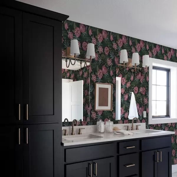 Papel de parede Flora escura com flores e folhas cor-de-rosa, fundo escuro Nr. a00724