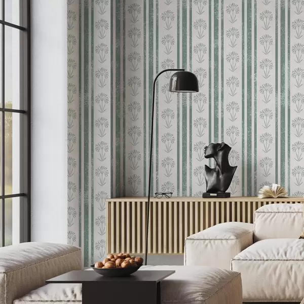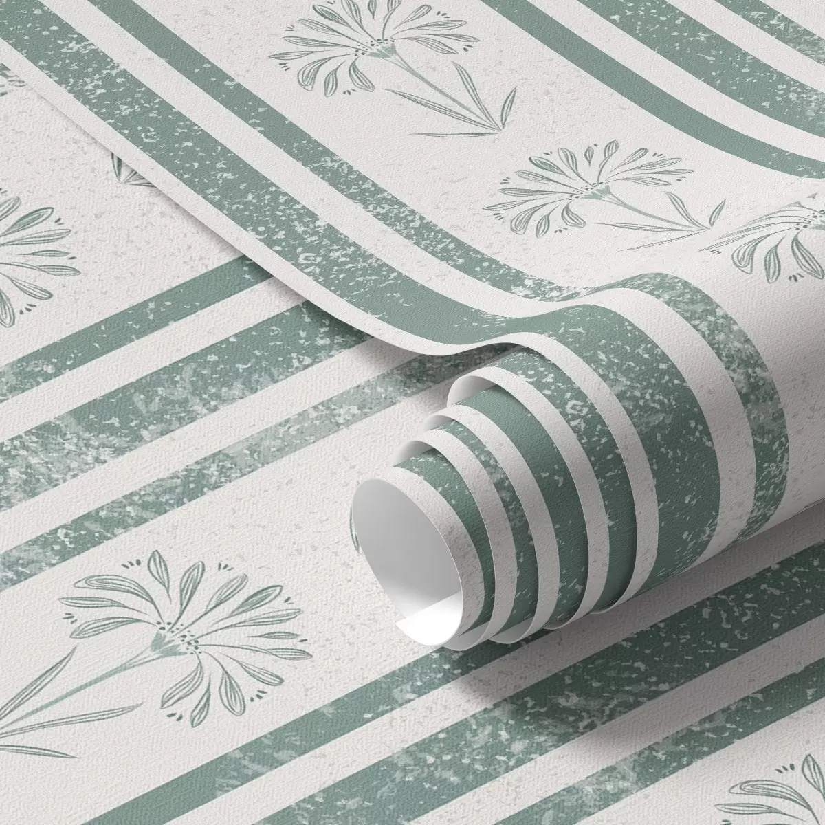 Papel de parede Padrão de fita com flores em tons de verde Nr. a00732