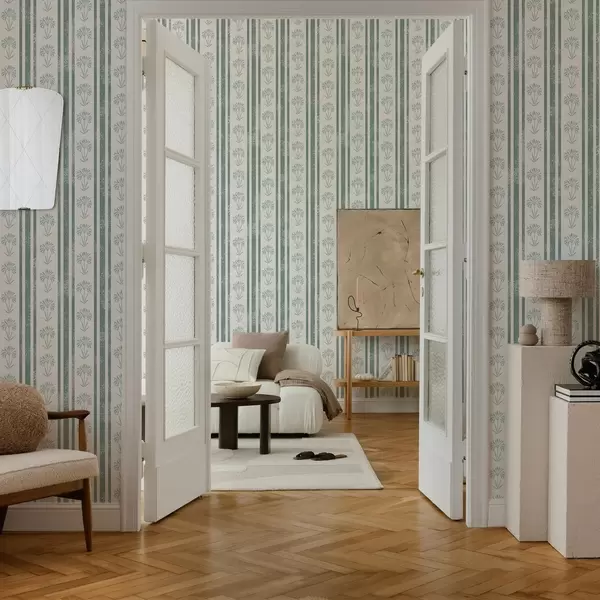 Papel de parede Padrão de fita com flores em tons de verde Nr. a00732