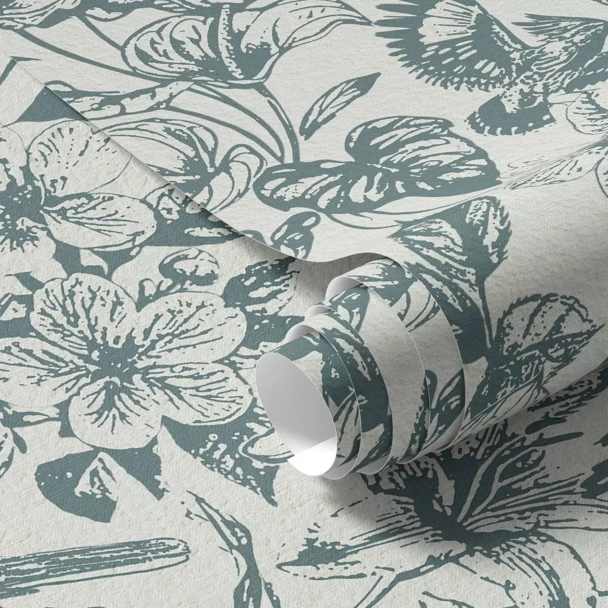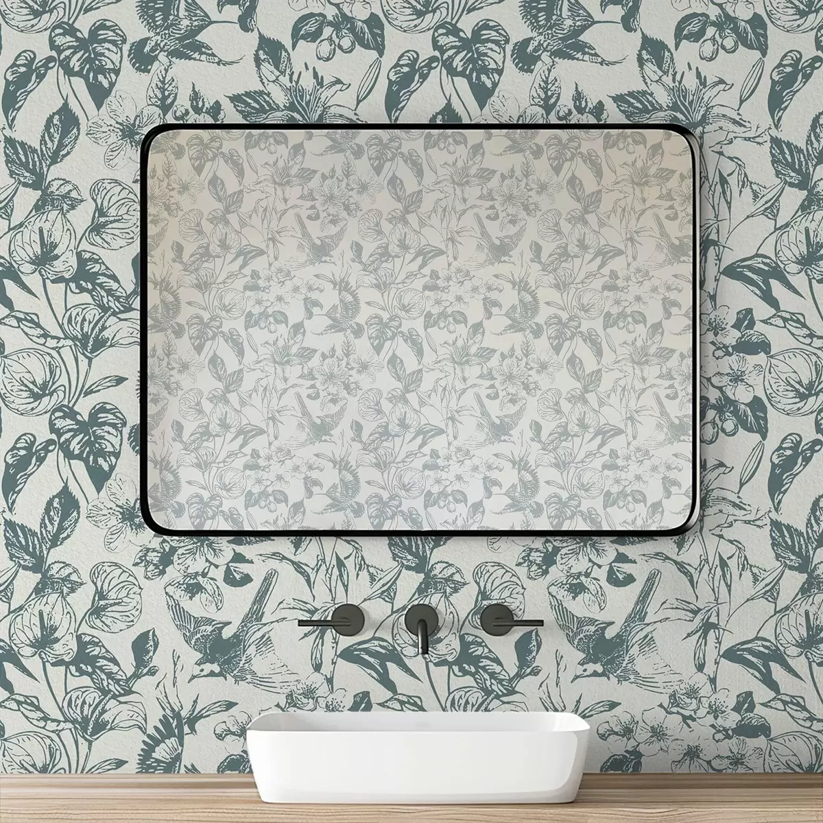 Papel de parede Ornamento floral monocromático com pássaros Nr. a00737