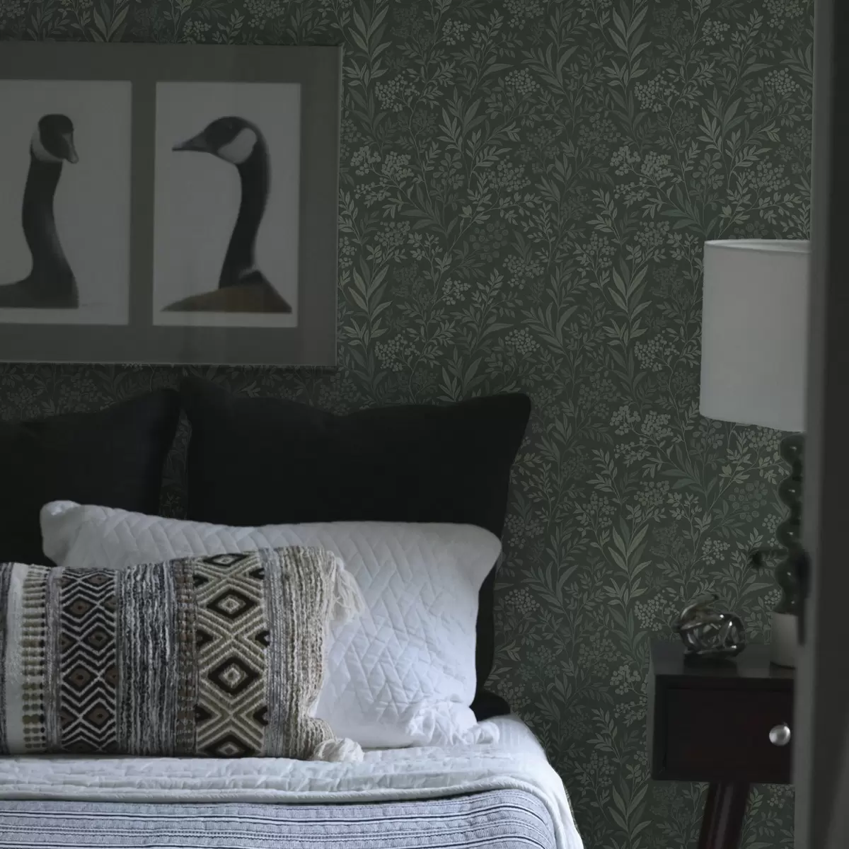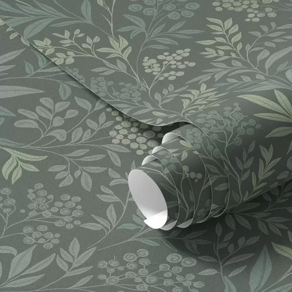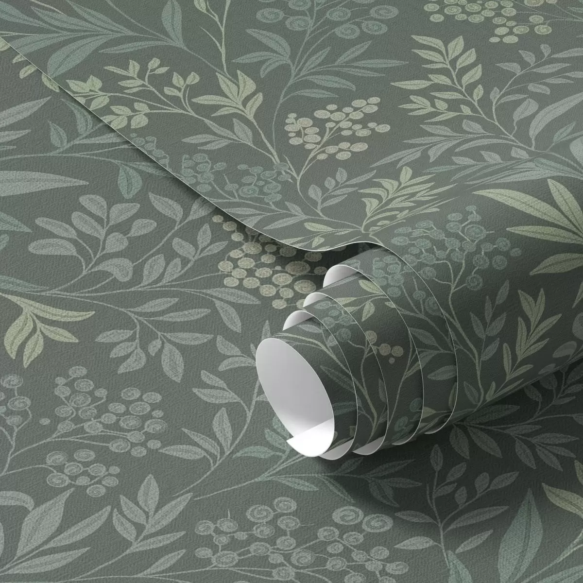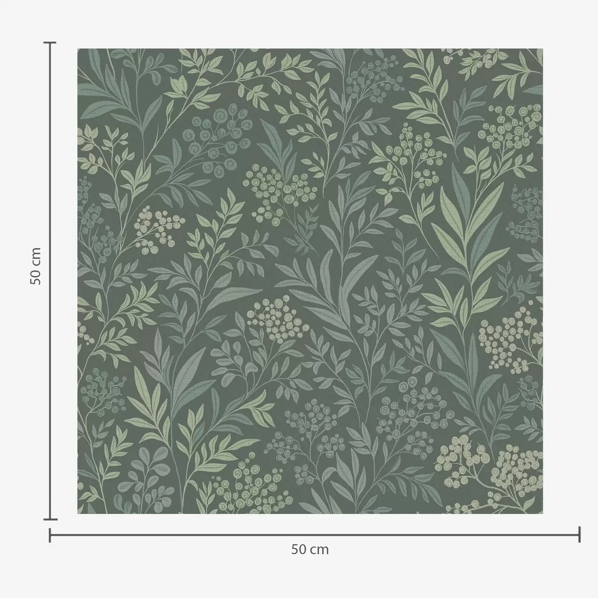 Papel de parede Ervas e bagas esmeraldas, padrão botânico requintado Nr. a00740
