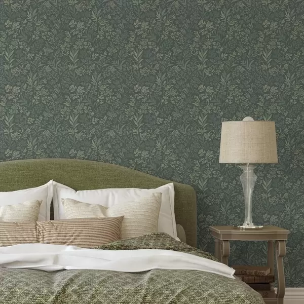 Papel de parede Ervas e bagas esmeraldas, padrão botânico requintado Nr. a00740