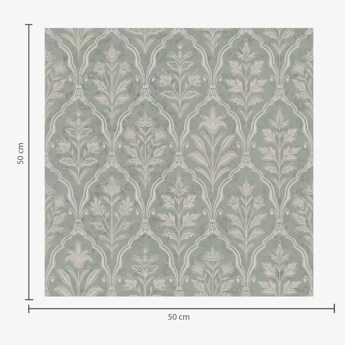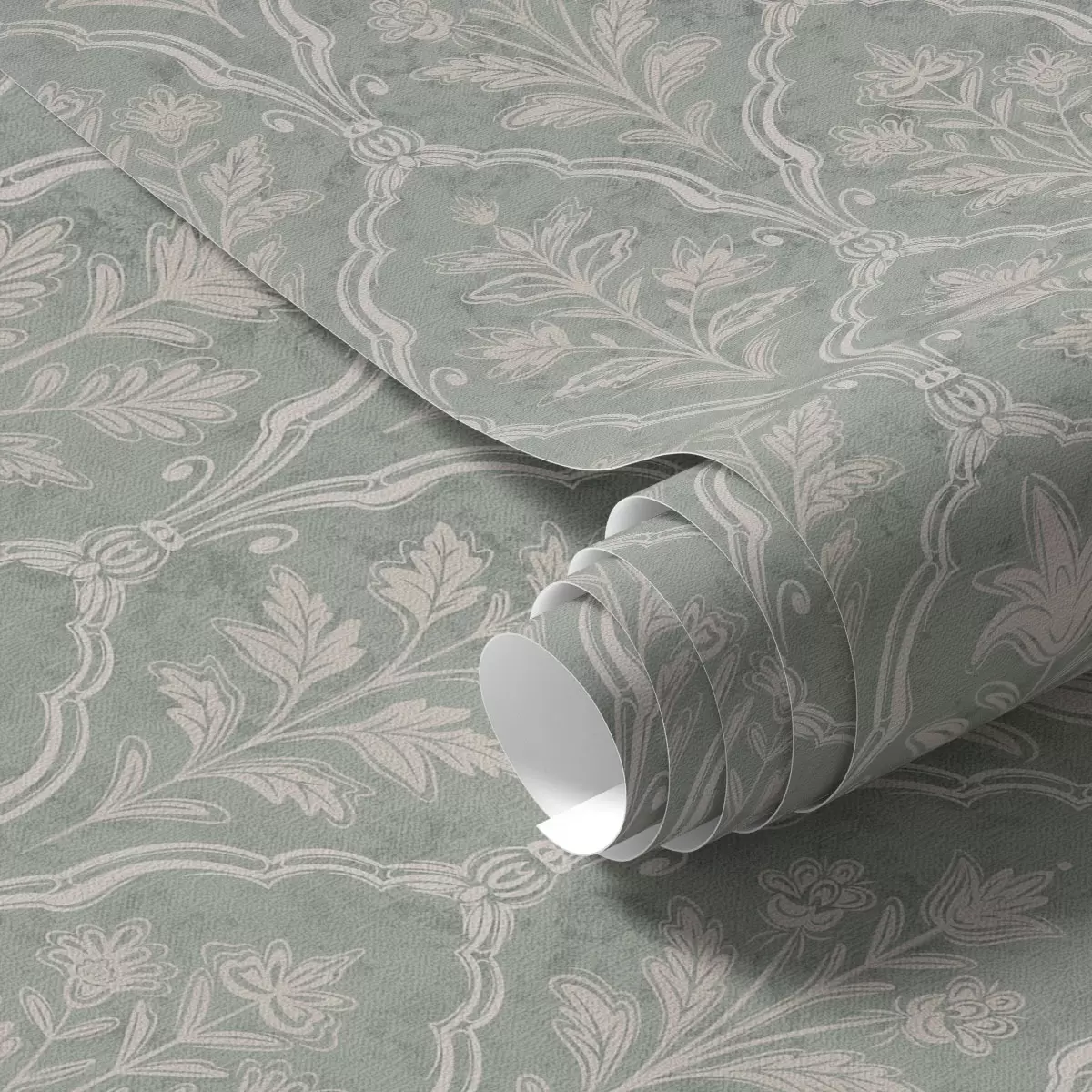 Papel de parede Damasco menta com finos medalhões florais Nr. a00741