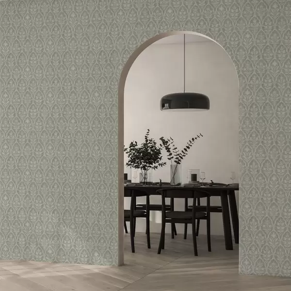Papel de parede Damasco menta com finos medalhões florais Nr. a00741