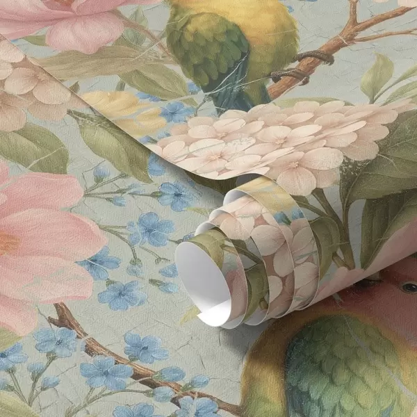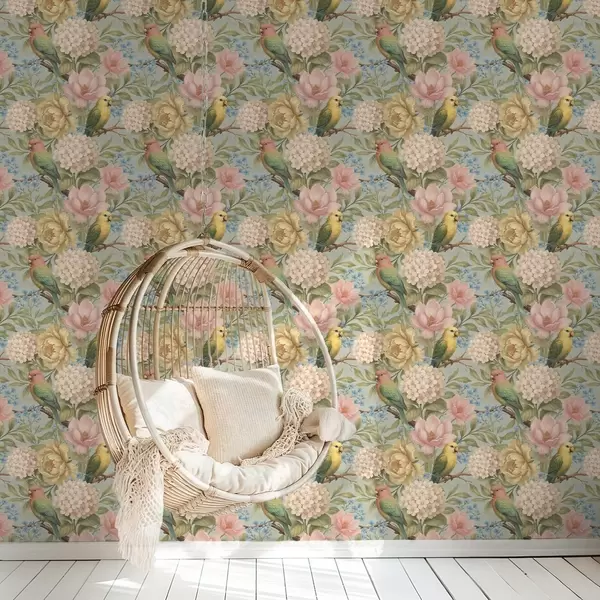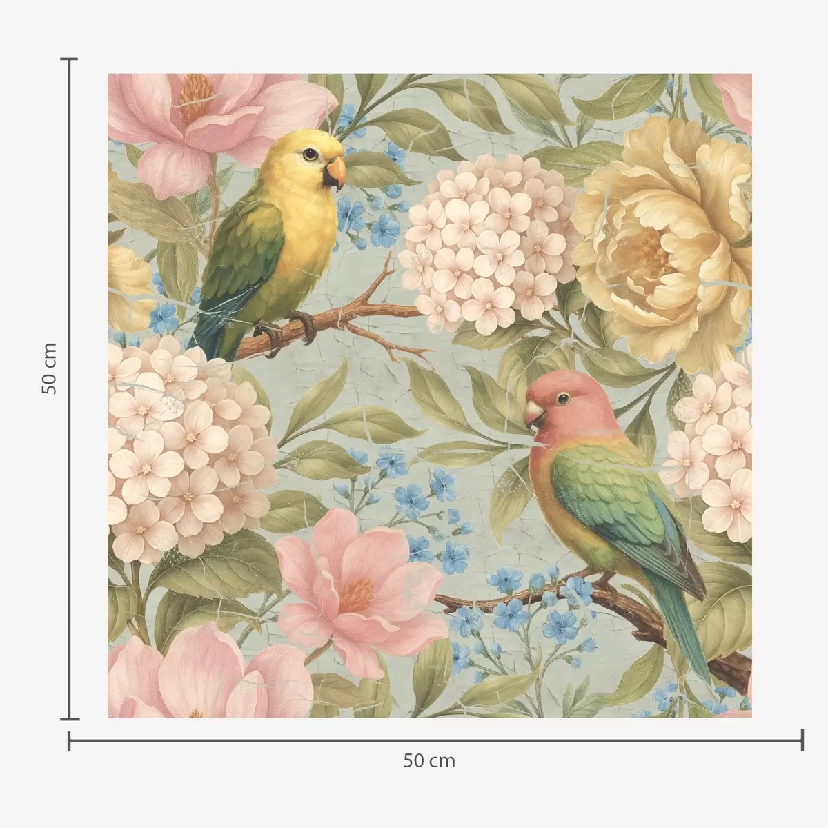 Papel de parede Papagaios entre peônias, hortênsias e magnólias Nr. a00747