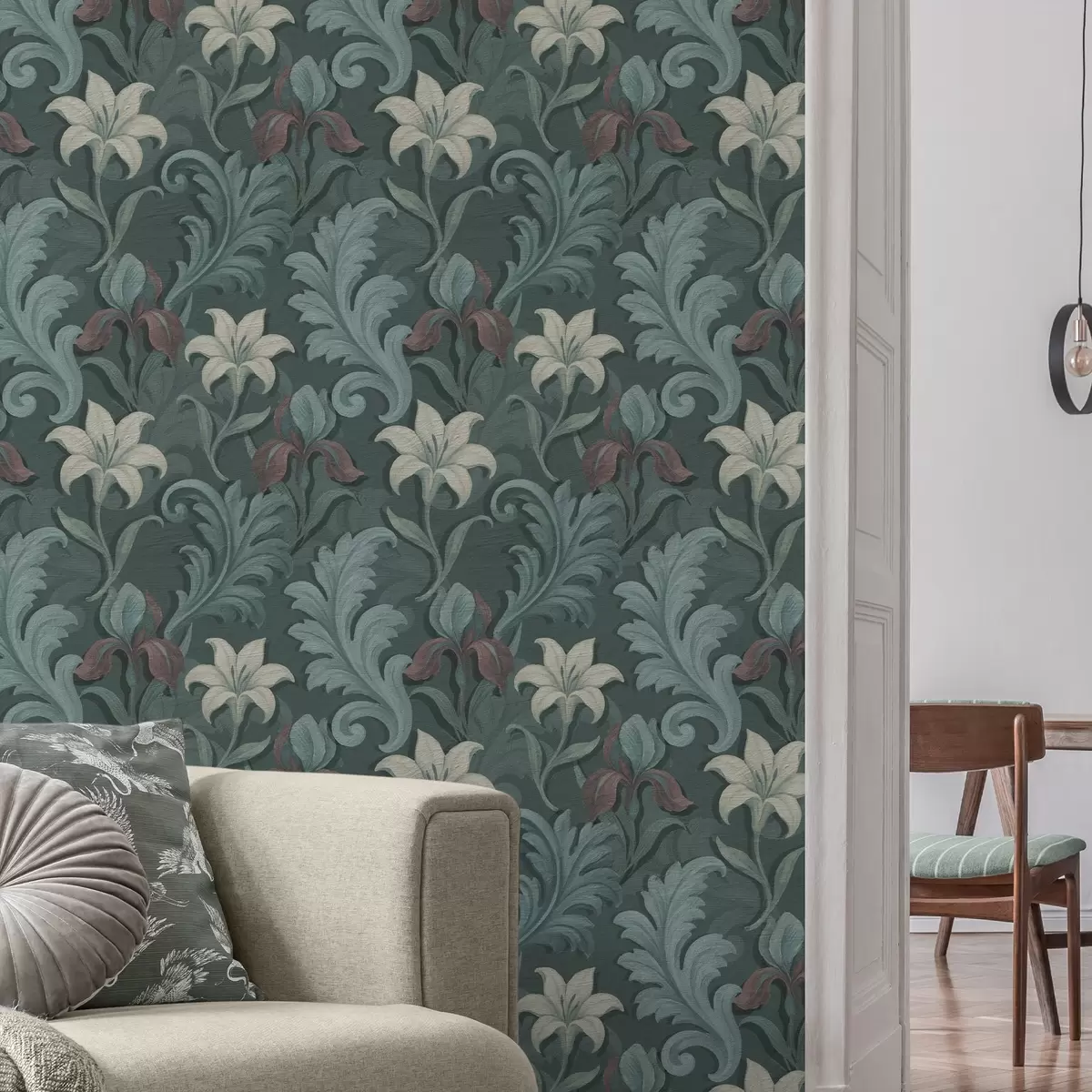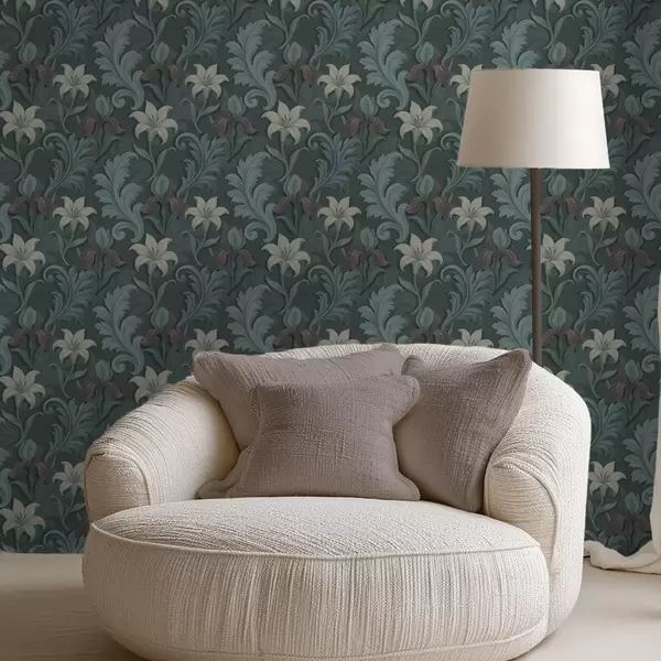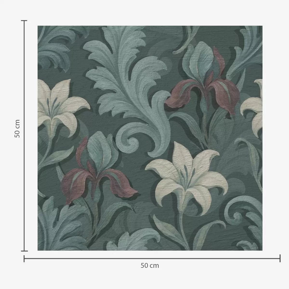 Papel de parede Fundo verde escuro com íris e folhas decorativas Nr. a00755