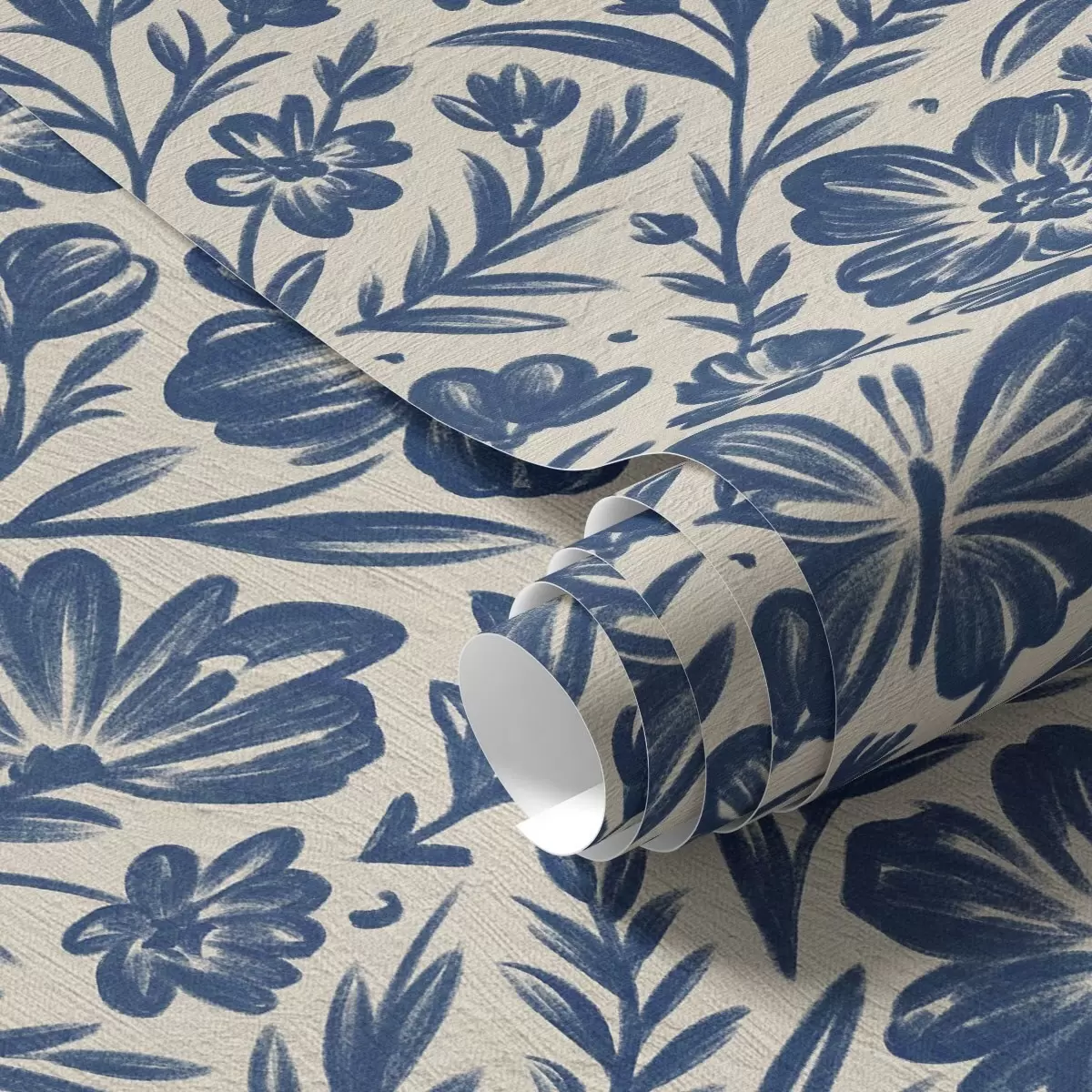 Papel de parede Ornamento floral azul com borboletas Nr. a00758