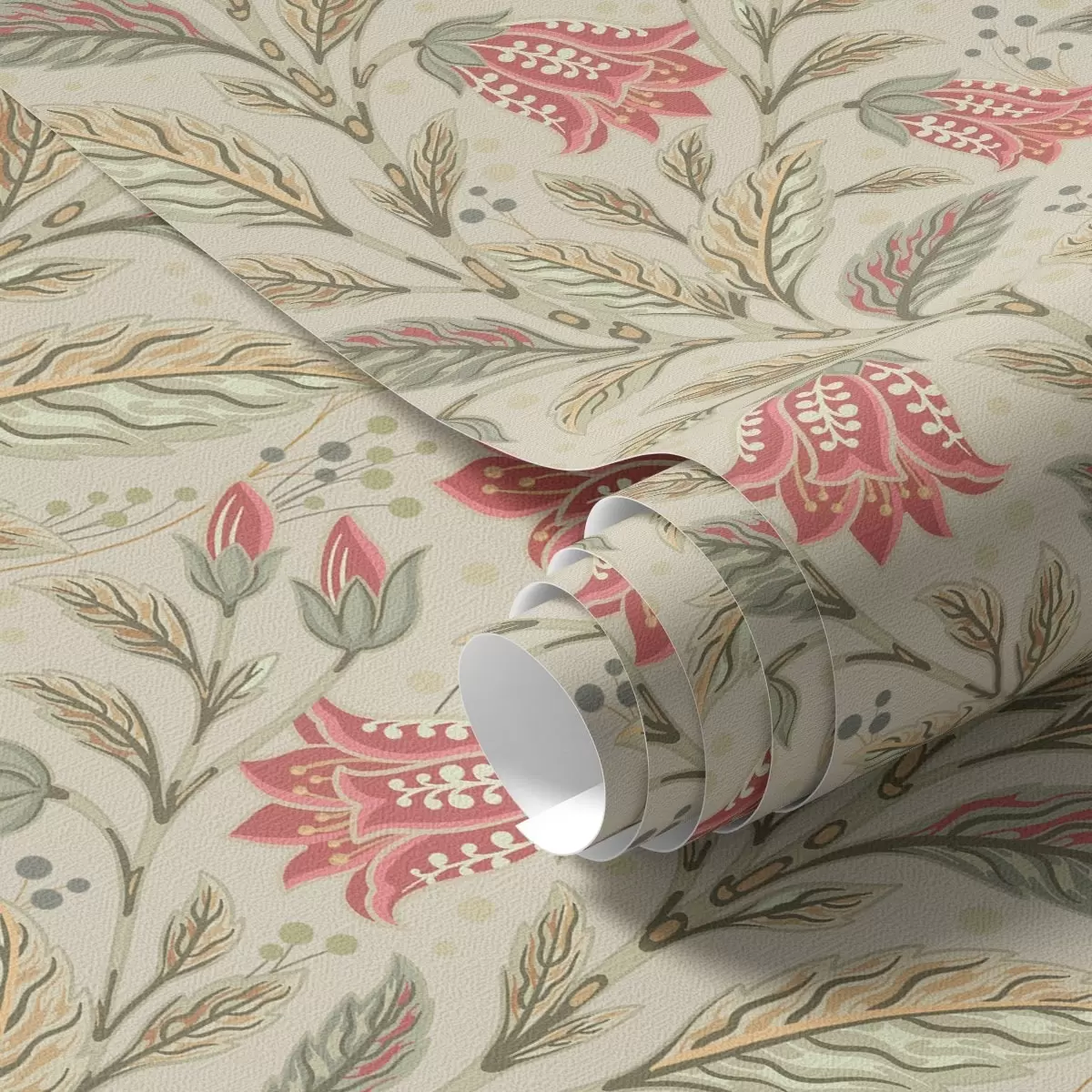 Papel de parede Pequenas flores com sinos em tons rosa-esverdeados Nr. a00760