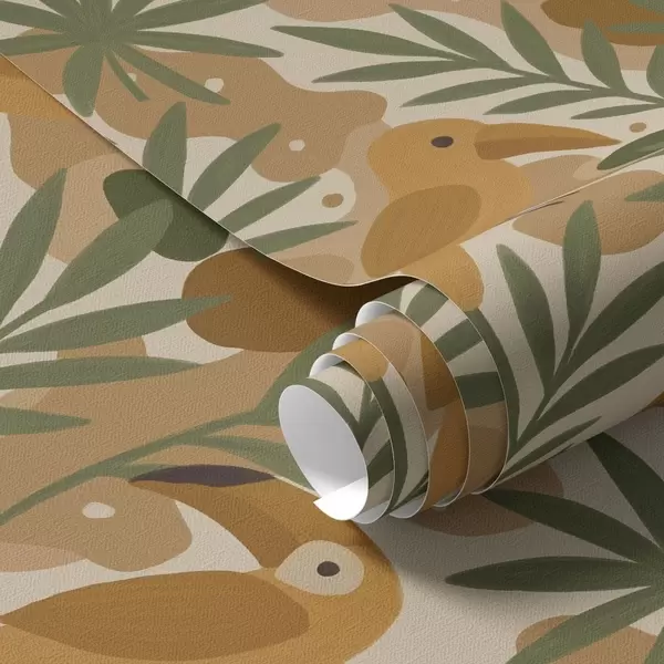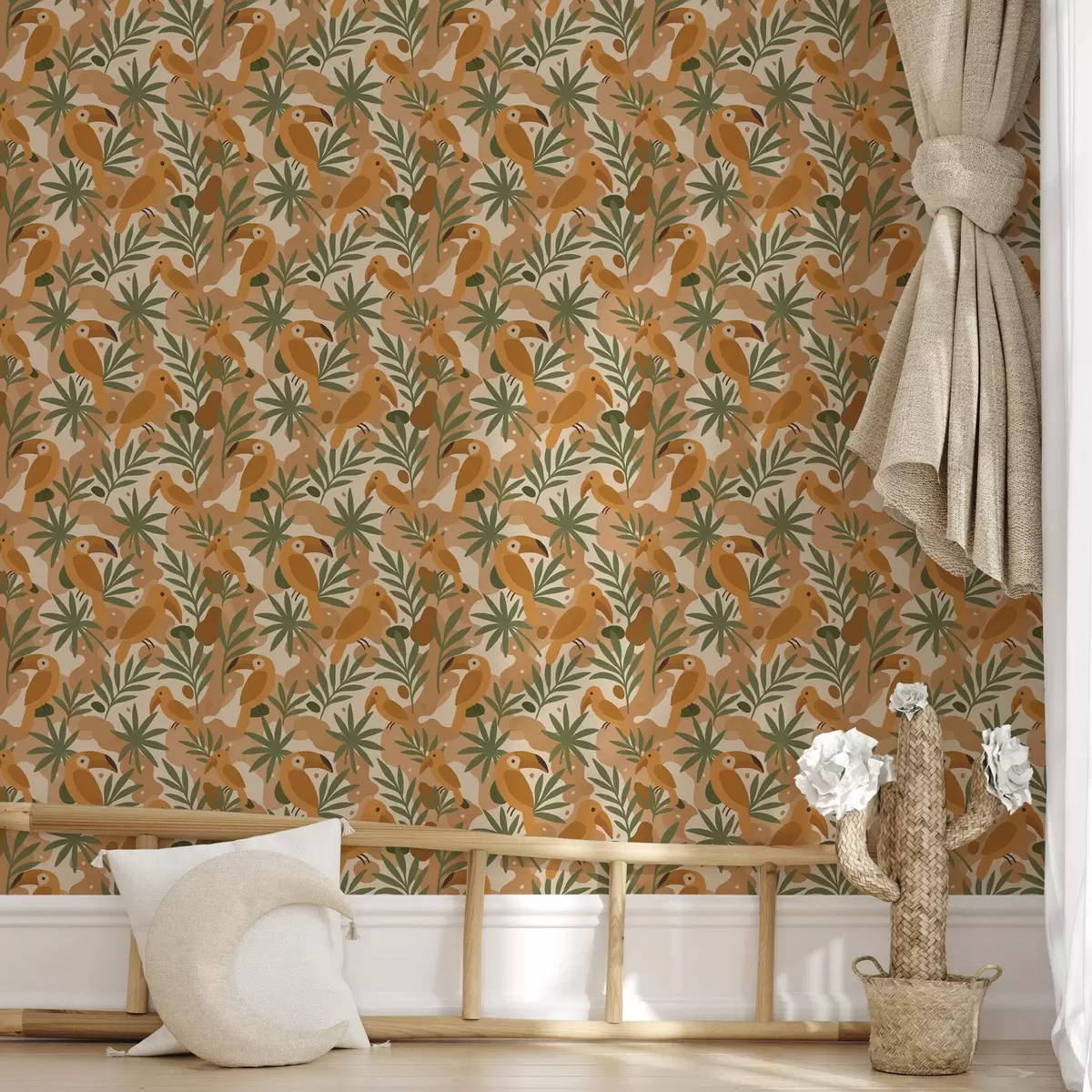 Papel de parede Tucanos estilizados entre folhas de palmeira Nr. a00762