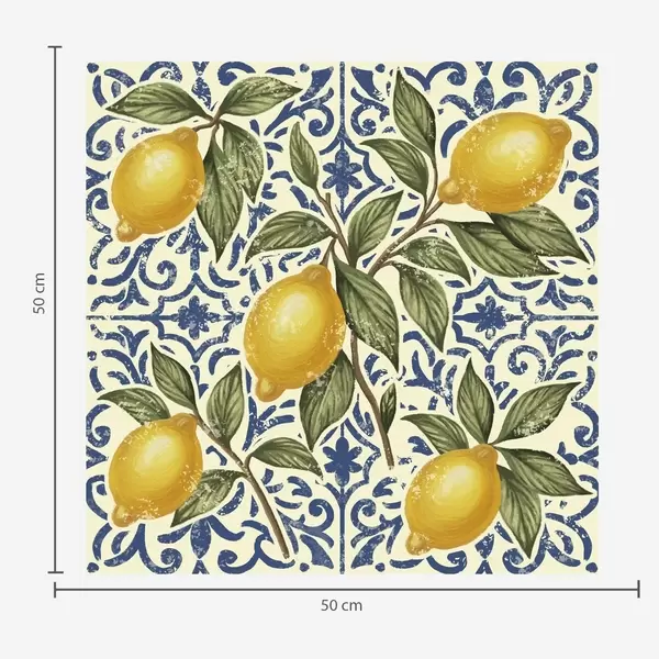 Papel de parede Ramos de limão com fundo ornamental azul Nr. a00763