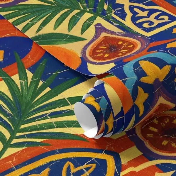 Papel de parede Laranjas brilhantes, folhas de palmeira e arcos marroquinos Nr. a00767