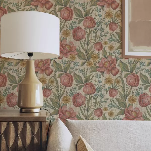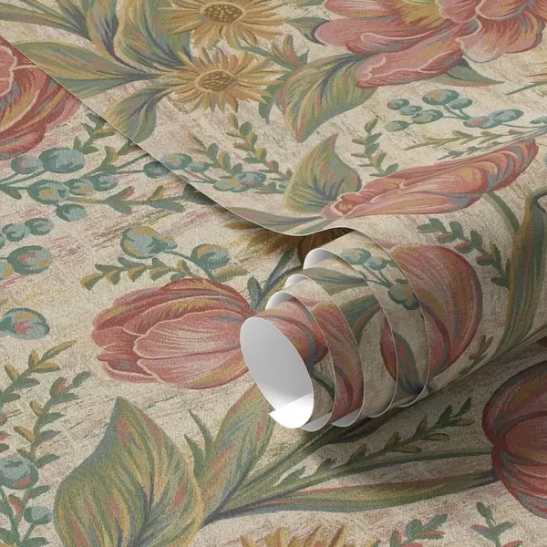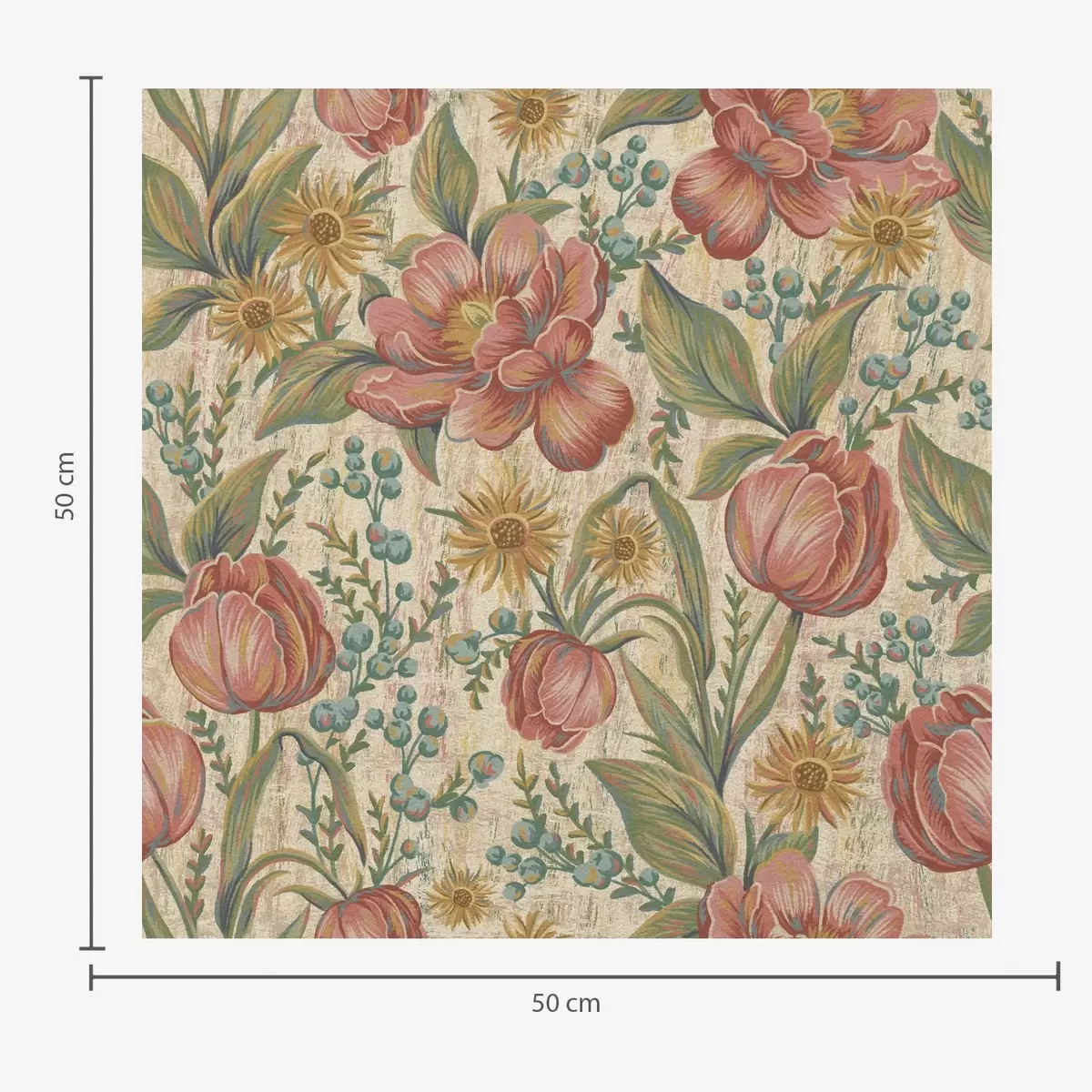 Papel de parede Tulipas e ásteres vintage, fundo creme texturizado Nr. a00773