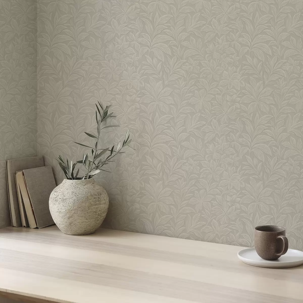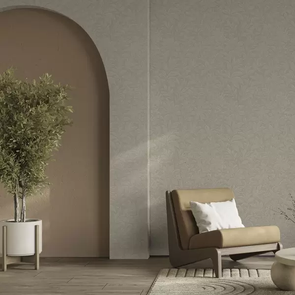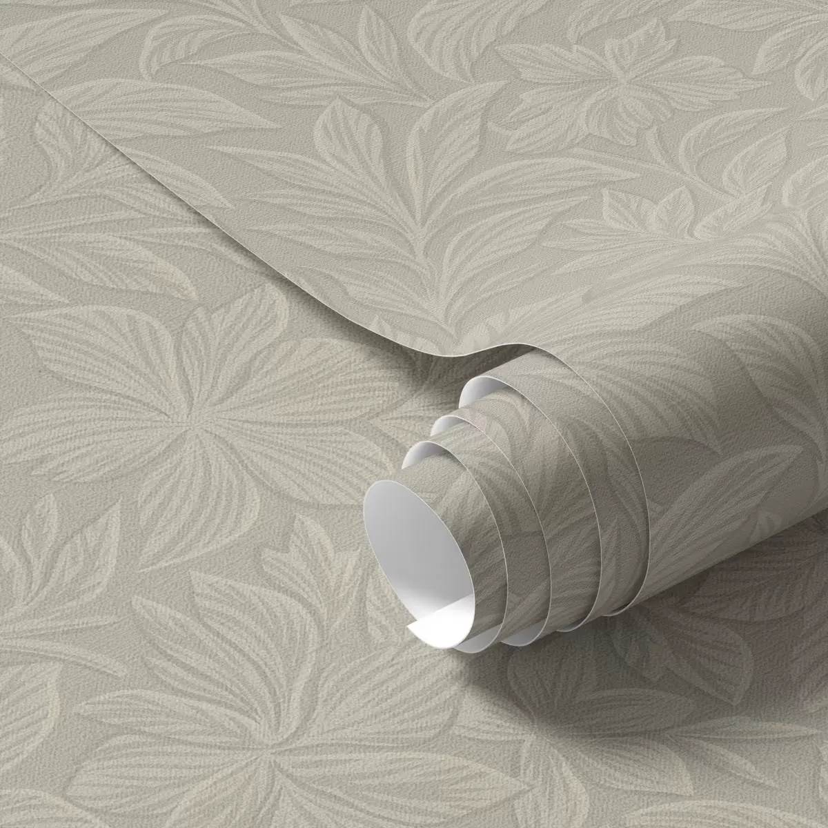 Papel de parede Siluetas de folhas em relevo, cinza-acastanhado quente Nr. a00781