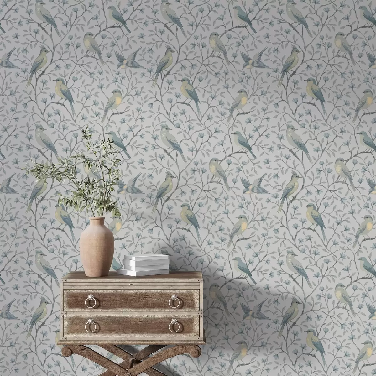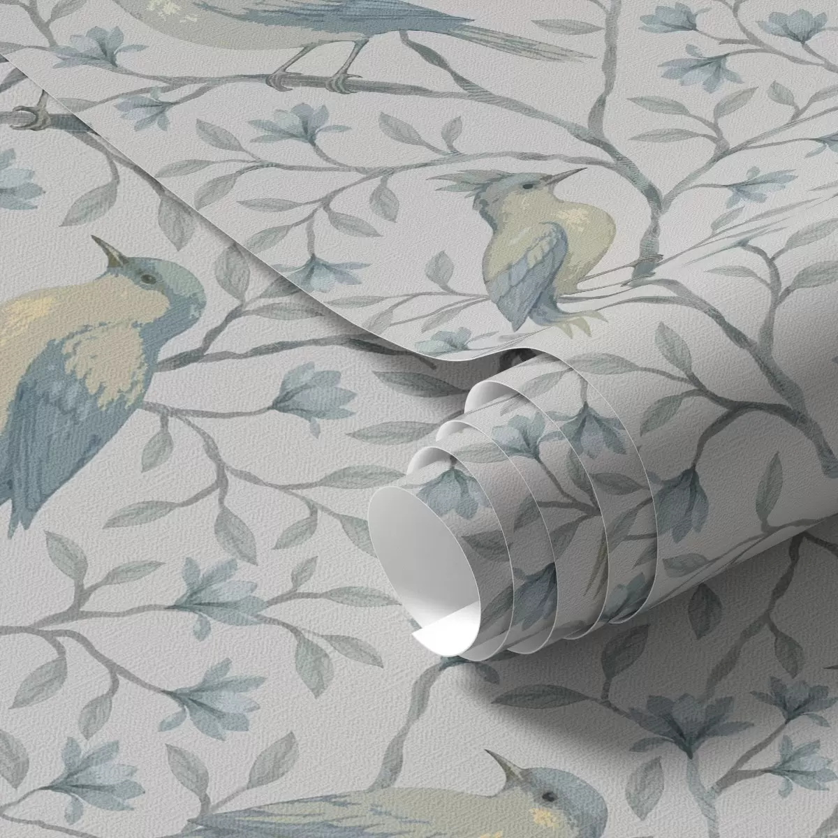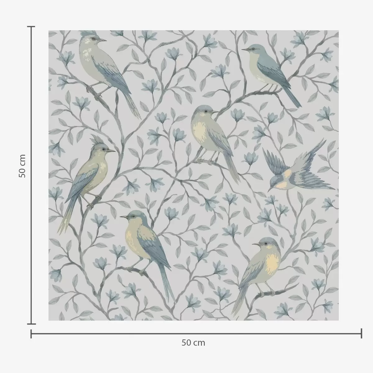 Papel de parede Pássaros em galhos, esquema cinza-azulado Nr. a00782