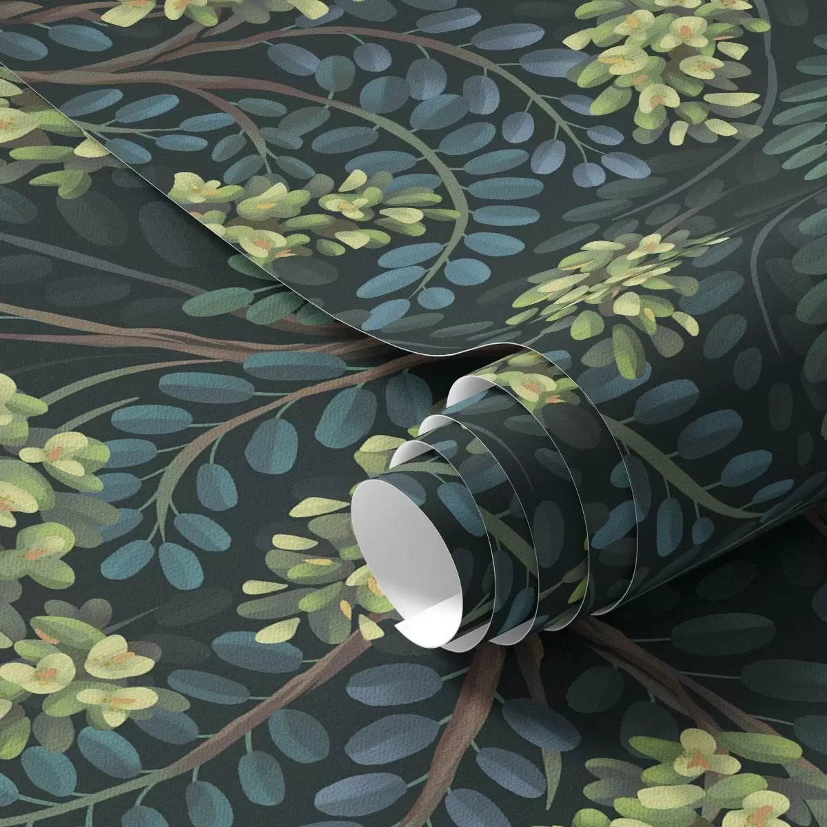 Papel de parede Ramos com inflorescências esverdeadas sobre um fundo escuro Nr. a00786