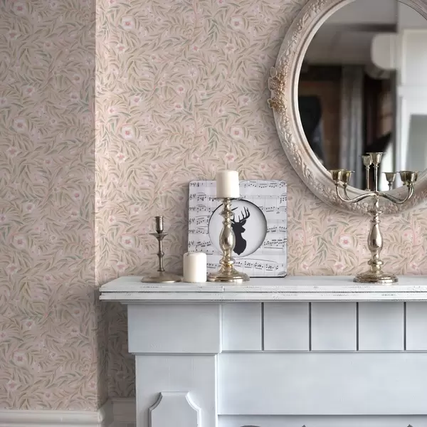 Papel de parede Delicadas flores cor-de-rosa e folhas suaves sobre um fundo pastel Nr. a00788