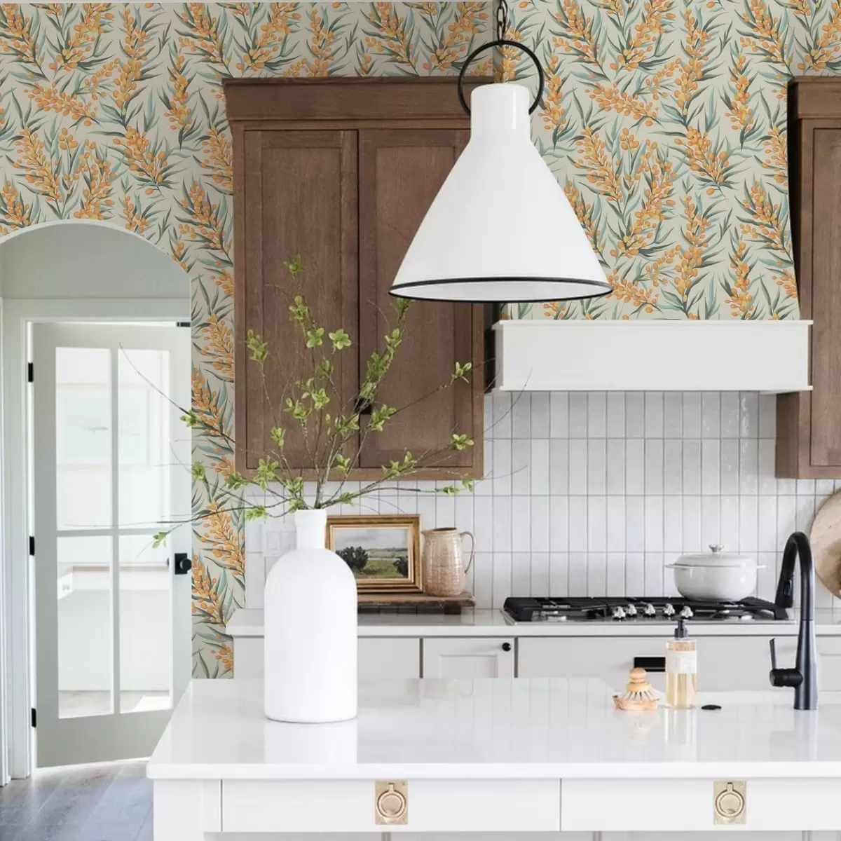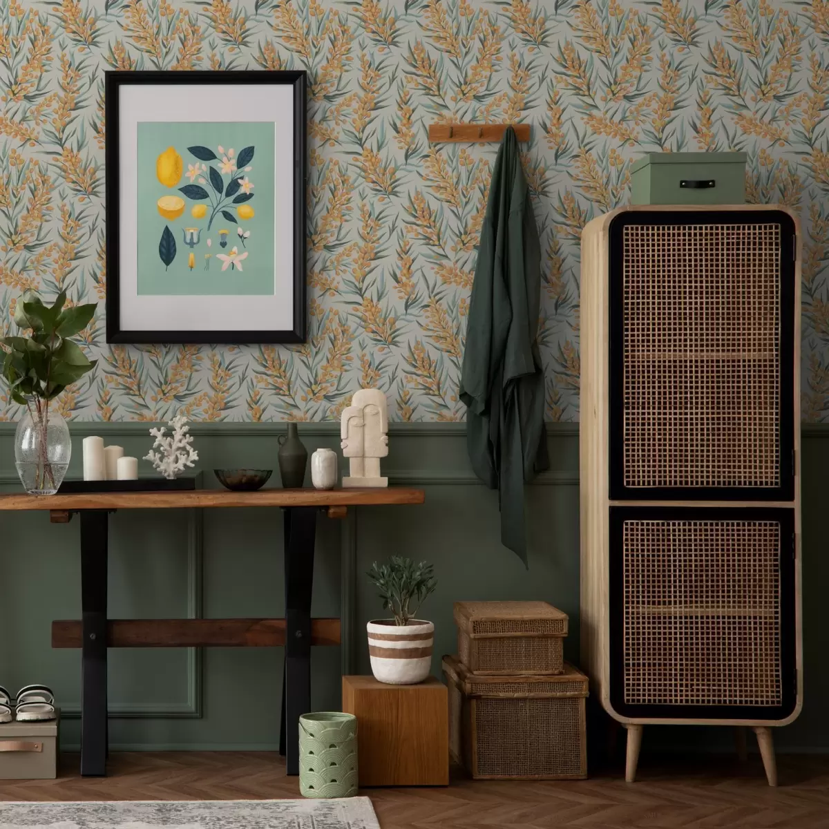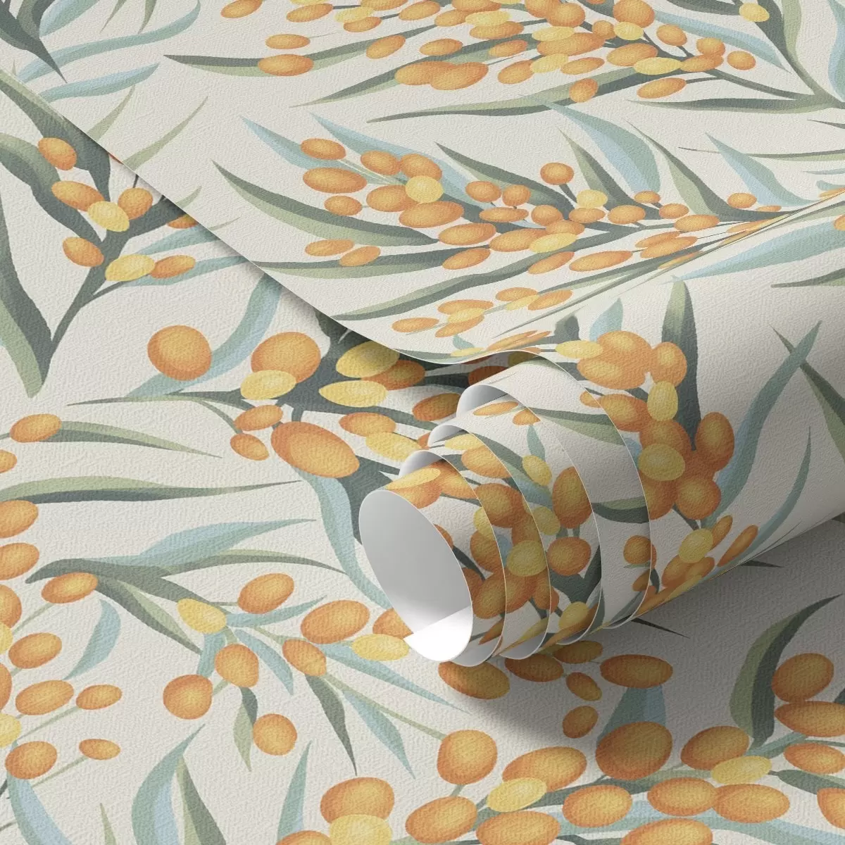 Papel de parede Galhos de espinheiro-marítimo com bagas alaranjadas, fundo claro Nr. a00792