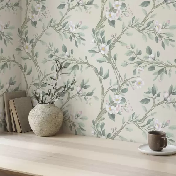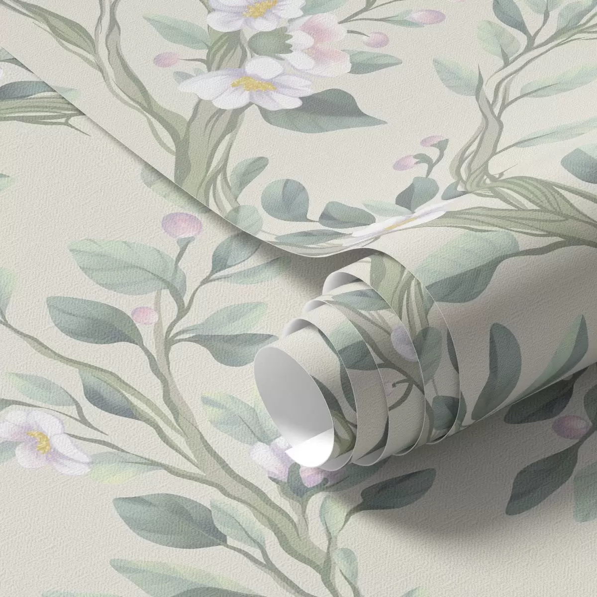 Papel de parede Ramos delicados em flor sobre fundo creme, tons pastel Nr. a00793