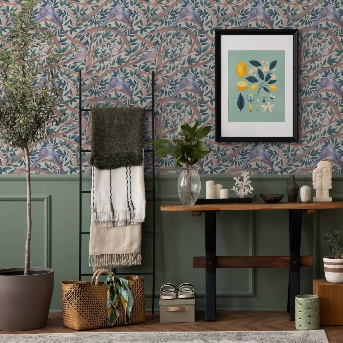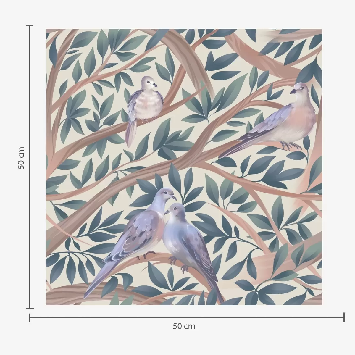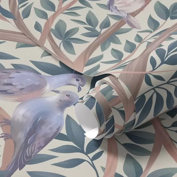 Papel de parede Pombas entre galhos e folhas numa paleta de tons pastel suaves Nr. a00796