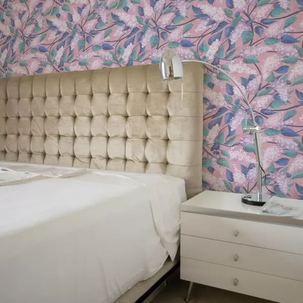 Papel de parede Delicadas flores lilás sobre fundo rosa, clima primaveril Nr. a00797